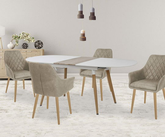 Jídelní stůl Avery je ideálním řešením pro rodiny nebo velké skupiny hostů. S rozměry 90 x 160 cm je dostatečně velký pro 6 až 8 osob. S výškou 77 cm a hloubkou 90 cm je stůl pohodlný a ergonomický pro jídla. Stůl je vyroben z kvalitních materiálů, jako jsou MDF lakovaná, MDF laminovaná a lakovaná ocel. Jeho bílá matná a dub sanremo barva dodává interiéru moderní a elegantní vzhled. Tento jídelní stůl je skvělou volbou pro ty, kteří hledají kvalitu, trvanlivost a design.