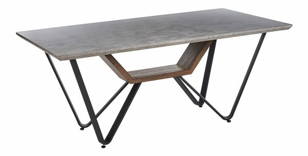 Univerzální jídelní stůl, který nabízí místo až pro 6 osob, nabízí ideální místo pro stolování. Je vyroben s ohledem na funkčnost a estetický vzhled a stane se výrazným doplňkem jakéhokoli prostoru. Stolová deska z MDF, která elegantně imituje beton, dodá vašemu jídelnímu prostoru moderní městský půvab. Jídelní stůl v industriálním stylu stojí na zajímavě tvarovaných černých kovových nohách s dřevěným prvkem, který zjemňuje vzhled betonu a propojuje moderní design s přírodním stylem. Změňte vzhled jídelního prostoru pomocí jedinečné kombinace designu a funkčnosti.