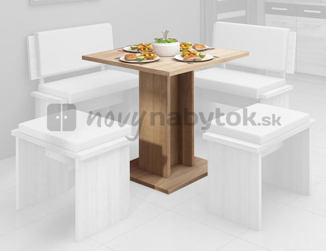 Jídelní stůl svými rozměry je určen pro menší jídelny. Můžete jej kombinovat s různými židlemi no primárně je určen pro lavičky a taburetky modelové řady Bond. Barevné provedení je v barvě dřeva dub sonoma.
