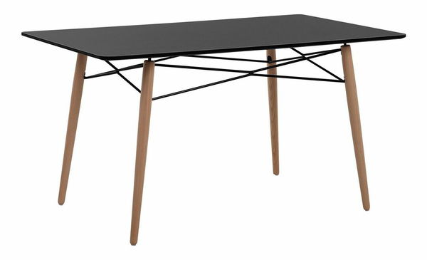 Doplňte svůj interiér moderním prvkem, který sjednotí a zároveň zvýrazní jeho vzhled. Tento jídelní stůl je vyroben z odolné dřevovláknité desky, která je pevná, snadno udržuje a vydrží roky používání. Celá konstrukce je postavena na nohou z bukového dřeva, které nabízí výbornou stabilitu. Černá stolová deska v kombinaci s barvou světlého dřeva vytváří minimalistický vzhled, který vynikne v různých typech interiérů.