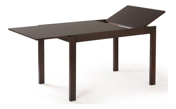 Krásný a jemně působící jídelní stůl s funkcí rozkladu je ideální do jídelen, kde obslouží 4 nebo 6 osob. Masivní dřevo, moření ořech.