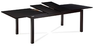 Rozměrný jídelní stůl, který je vhodný pro početné rodiny nebo kanceláře firem. Po rozložení obslouží až 10 osob. Masivní dřevo, moření černá barva nebo wenge.