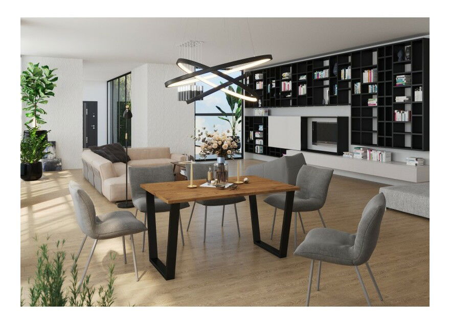 ZobrazitJídelní stůl Carol 138x67 (dub lancelot) je krásný industriální stůl vhodný do kuchyně nebo jídelny. Jeho bílá barva dodává stolu jemnost, zatímco černé nohy mu dodávají mohutnost. Stolová deska je vyrobena z 28 mm materiálu a nohy jsou kovové, stříkané práškovou černou barvou. Rozměry nožiček jsou 80 mm x 40 mm a celková výška stolu je 75 cm, hloubka 67 cm. Montáž je nutná a nohy lze polohovat do libovolné vzdálenosti, ale deska stolu není označena montážními otvory. Tento stůl je ideální pro 4 až 6 osob.