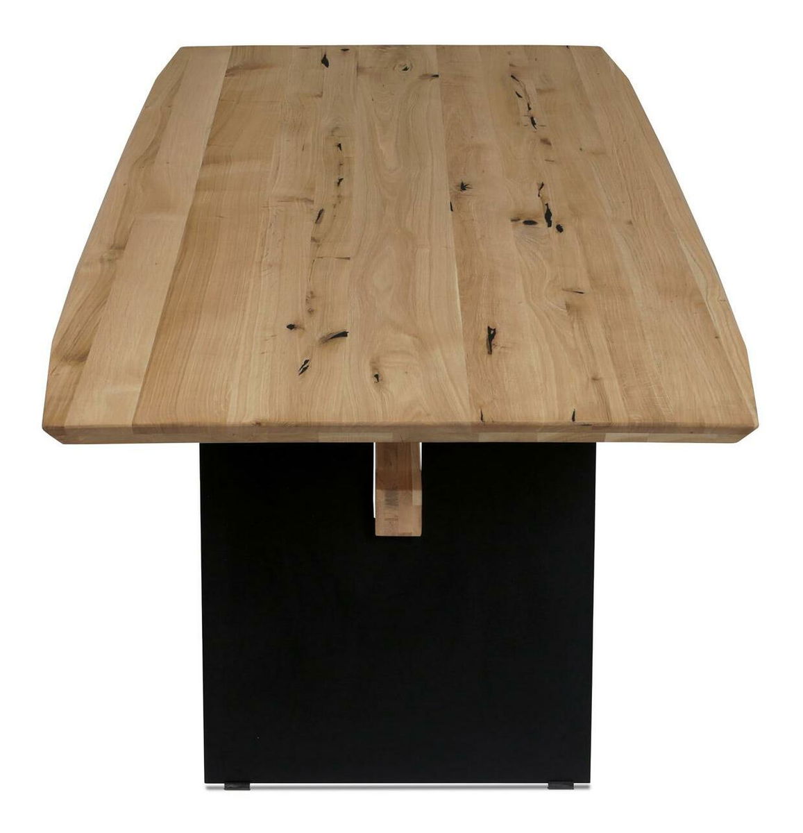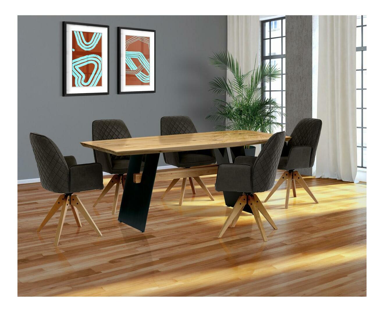 Zažijte spojení funkčnosti a luxusu ve svém jídelním prostoru s jídelním stolem. Tento jídelní stůl z masivního dřeva se sytou přírodní barvou a autentickým dekorem dubové desky přináší industriální náladu, která doplní moderní i tradiční interiéry. Černé kovové nohy umocňují teplou texturu dřeva a vytvářejí příjemnou atmosféru, která nikdy nezklame. Stůl s obdélníkovým designem desky je vyroben z masivního dřeva – což zajišťuje odolnost a dlouhotrvající pevnost. Tento kus, zvýrazněný svojí robustní deskou, je příkladem řemeslné dokonalosti ve spojení s designem. Není jen kusem nábytkem, ale základním prvkem pro dlouholetá nezapomenutelná rodinná setkání nebo ohromování obchodních partnerů během schůzek. Jídelní stůl rezonuje výjimečně snadným používáním a jedinečným stylovým duem kovu a dřeva. Podepřený dvojitým kovovým nohama zajišťuje stabilitu a zároveň vypovídá o svém industriálním šarmu. Nechte svůj jídelní prostor nebo zasedací místnost nově definovat pevností, elegancí a sofistikovaností, kterou nabízí.