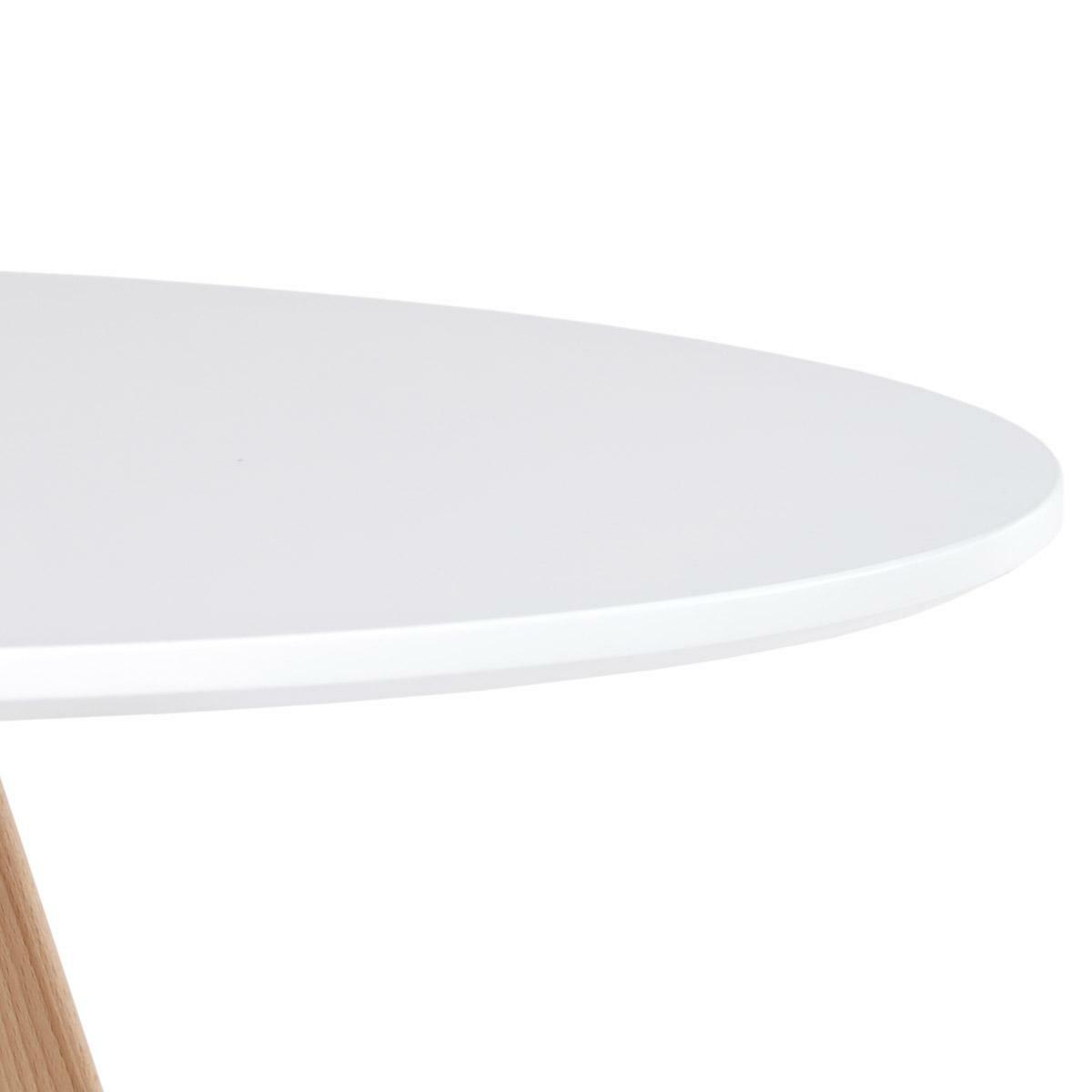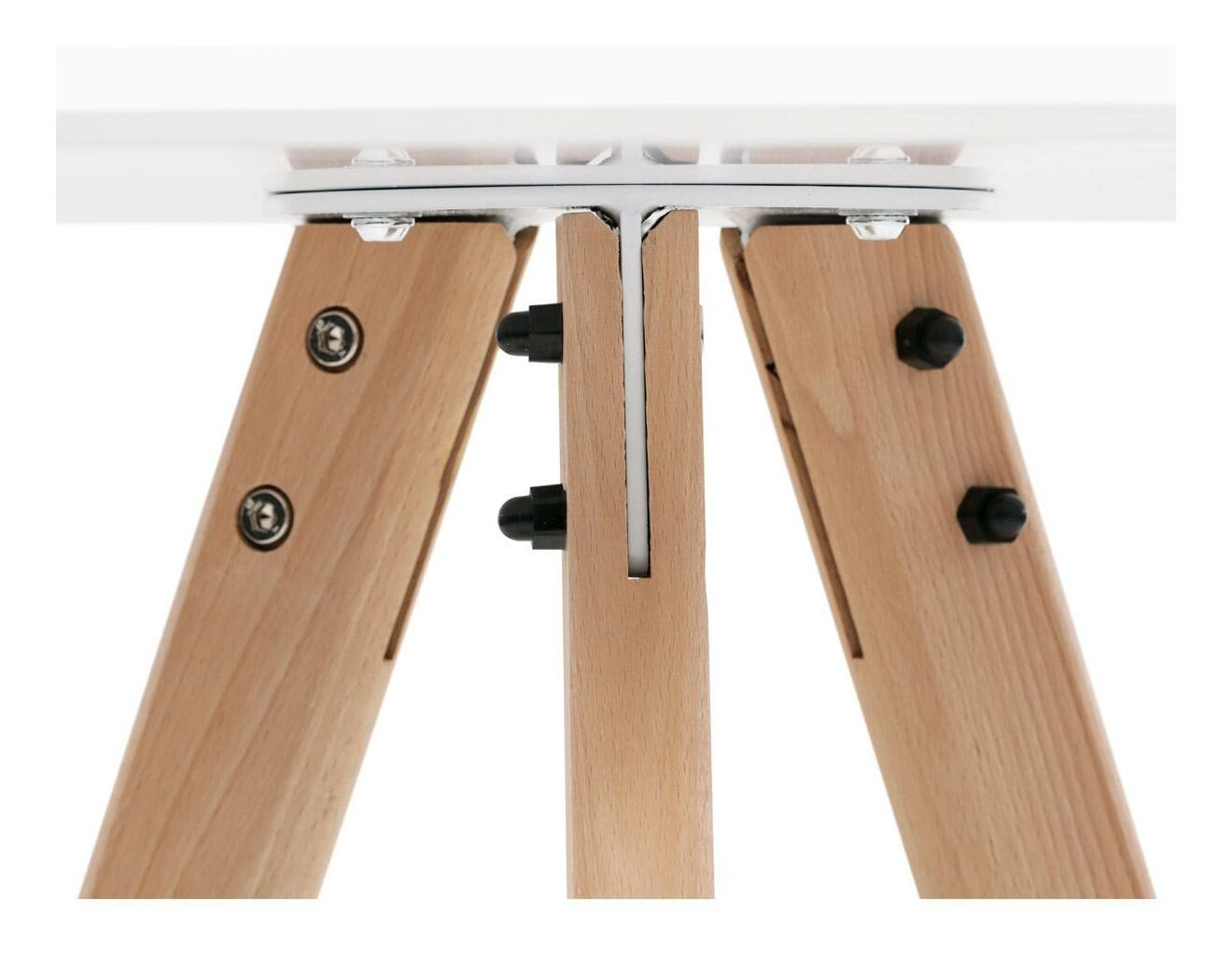Tento stůl ve skandinávském stylu v sobě spojuje minimalistickou eleganci s bezkonkurenční funkčností. Je tak příkladnou volbou pro celou řadu interiérů od sofistikovaných kanceláří až po útulné jídelny. Elegantní matně bílá povrchová úprava desky z MDF v kombinaci s podmanivým kulatým tvarem podporuje pocit otevřenosti a světla v každé místnosti. Jeho design nejen zvyšuje estetický dojem, ale také zajišťuje příjemnou atmosféru pro schůzky, stolování i neformální setkání. Základ tohoto nádherného kusu spočívá na třech nohách z masivního dřeva, které se vyznačují teplou hnědou barvou. Tento stabilní typ základny zajistí odolnost a spolehlivost, což jsou vlastnosti, které zákazníci při dlouhodobém používání velmi ocení. Harmonické spojení nohou z masivního dřeva s horní deskou z MDF s matnou povrchovou úpravou navíc vnáší do interiéru nádech přírody a jemně zvyšuje pohodlí i klid každého obytného prostoru. Kromě stylového vzhledu je stůl slaven pro své praktické výhody. Povrchy se výjimečně snadno čistí a udržují, což je úleva pro vytížené kanceláře i aktivní domácnosti. Ideální pro všechny, kteří chtějí svému okolí vdechnout špetku skandinávského šarmu, aniž by se vzdali praktičnosti.