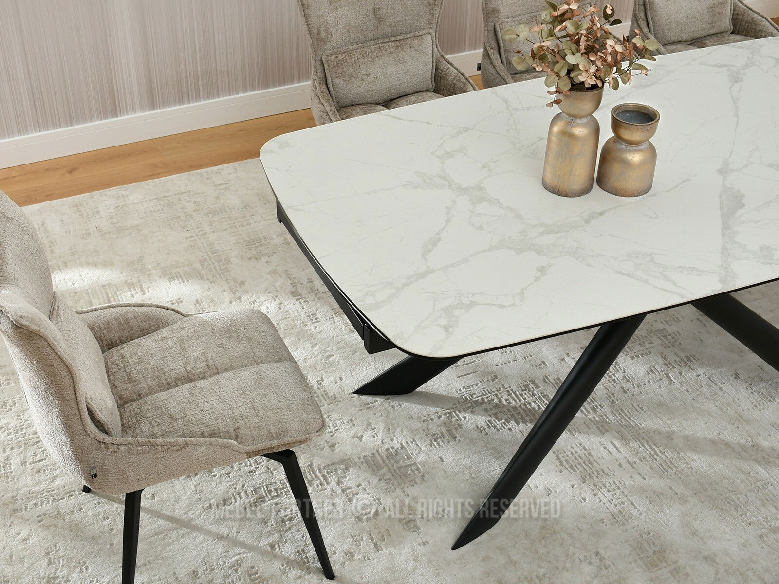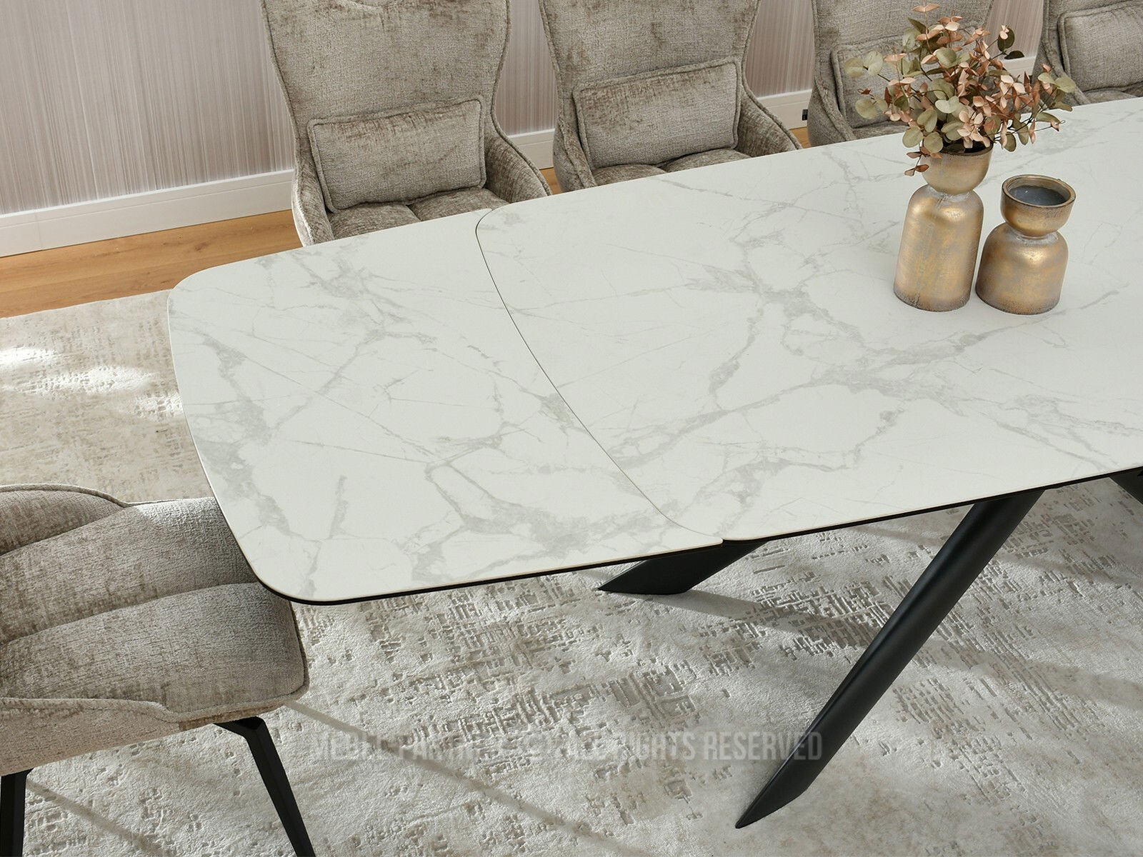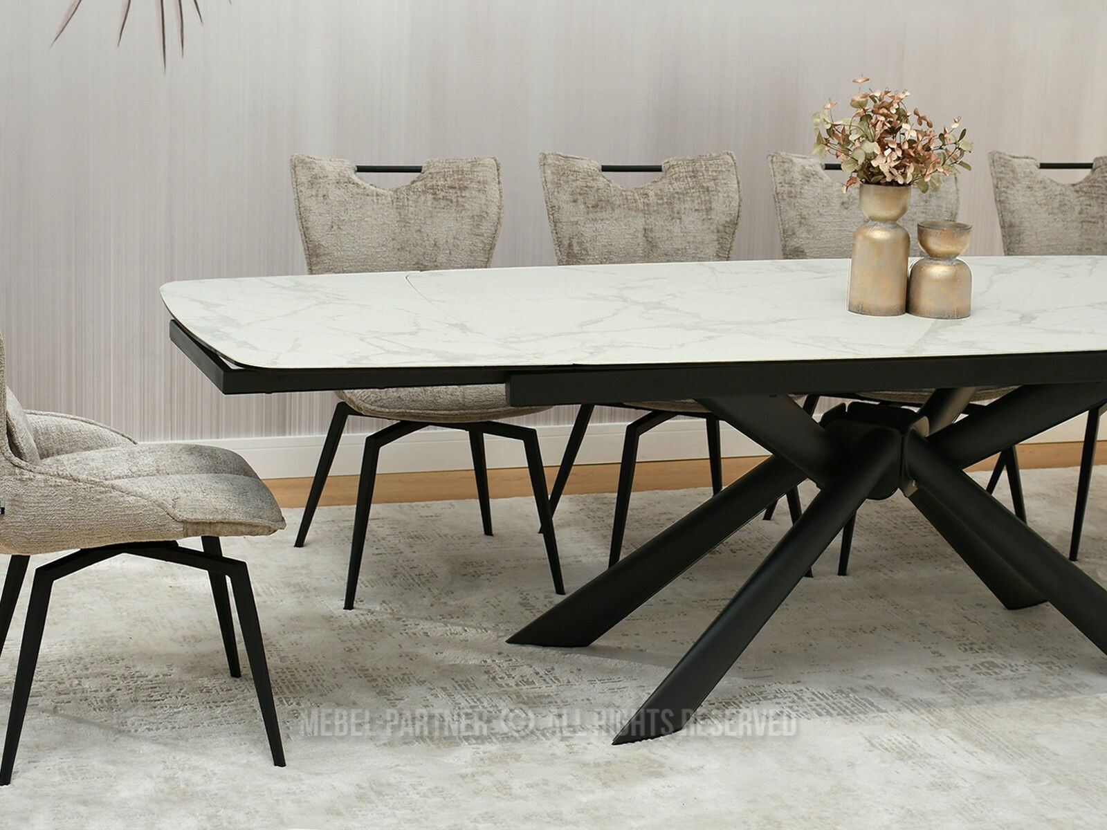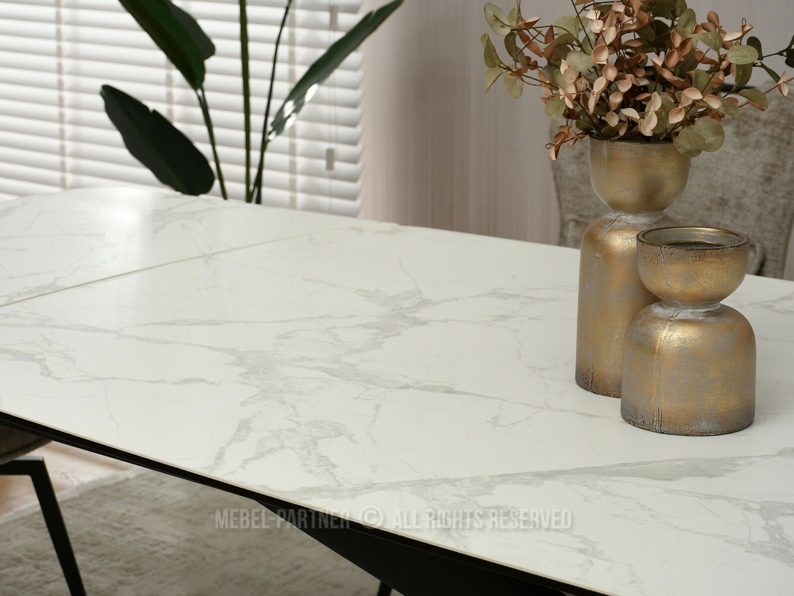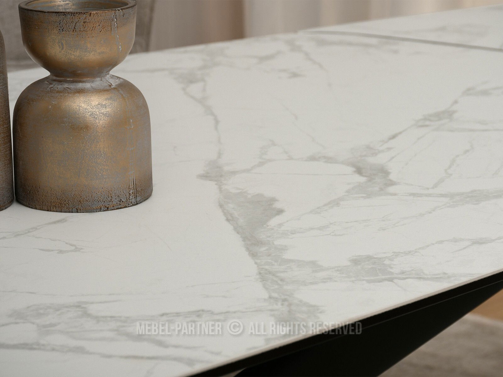 Jídelní stůl Denzel (bílý mramor + černá)