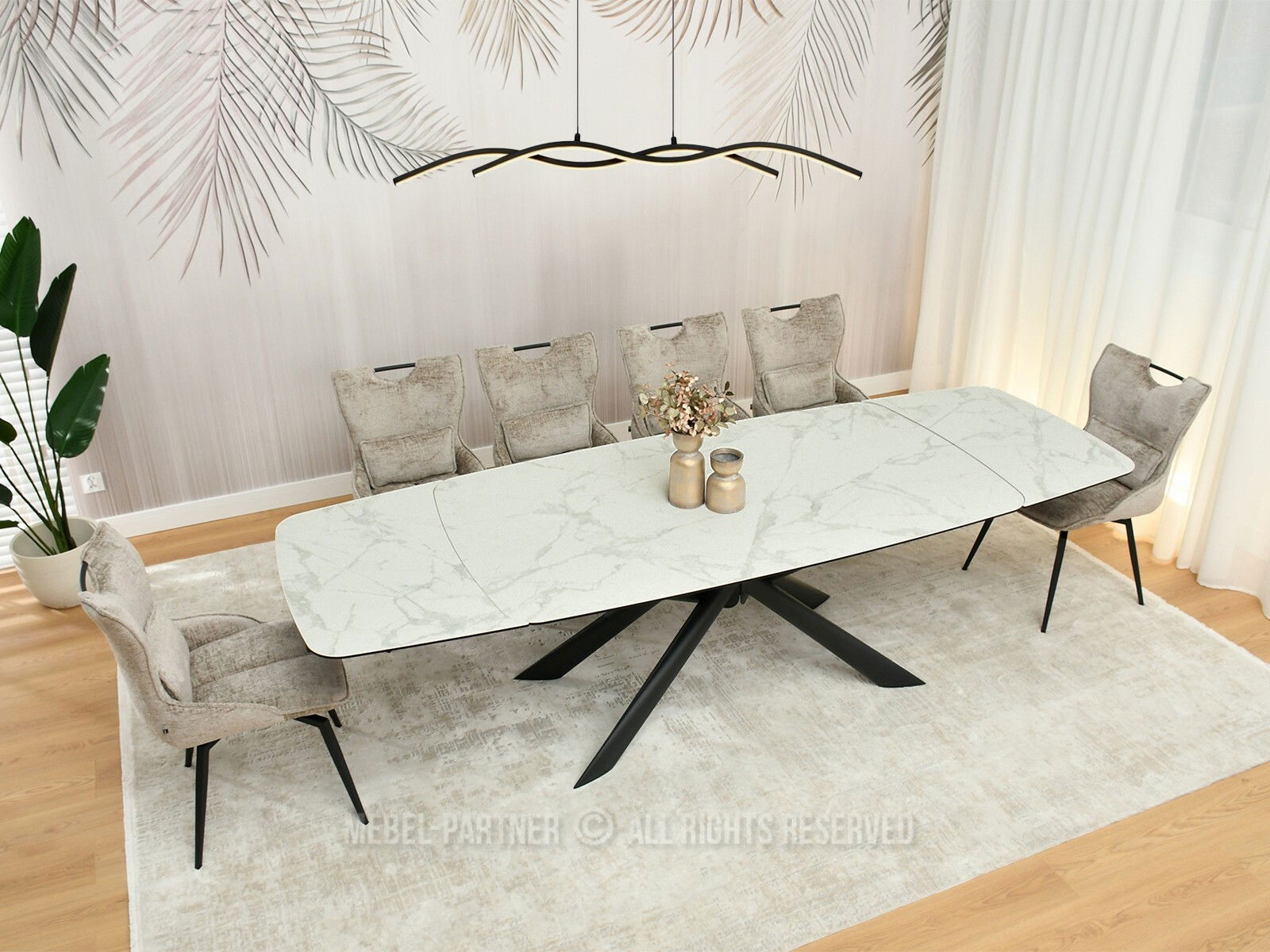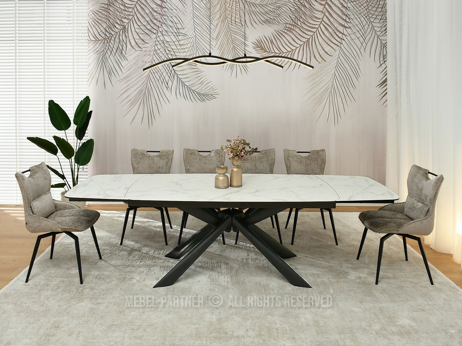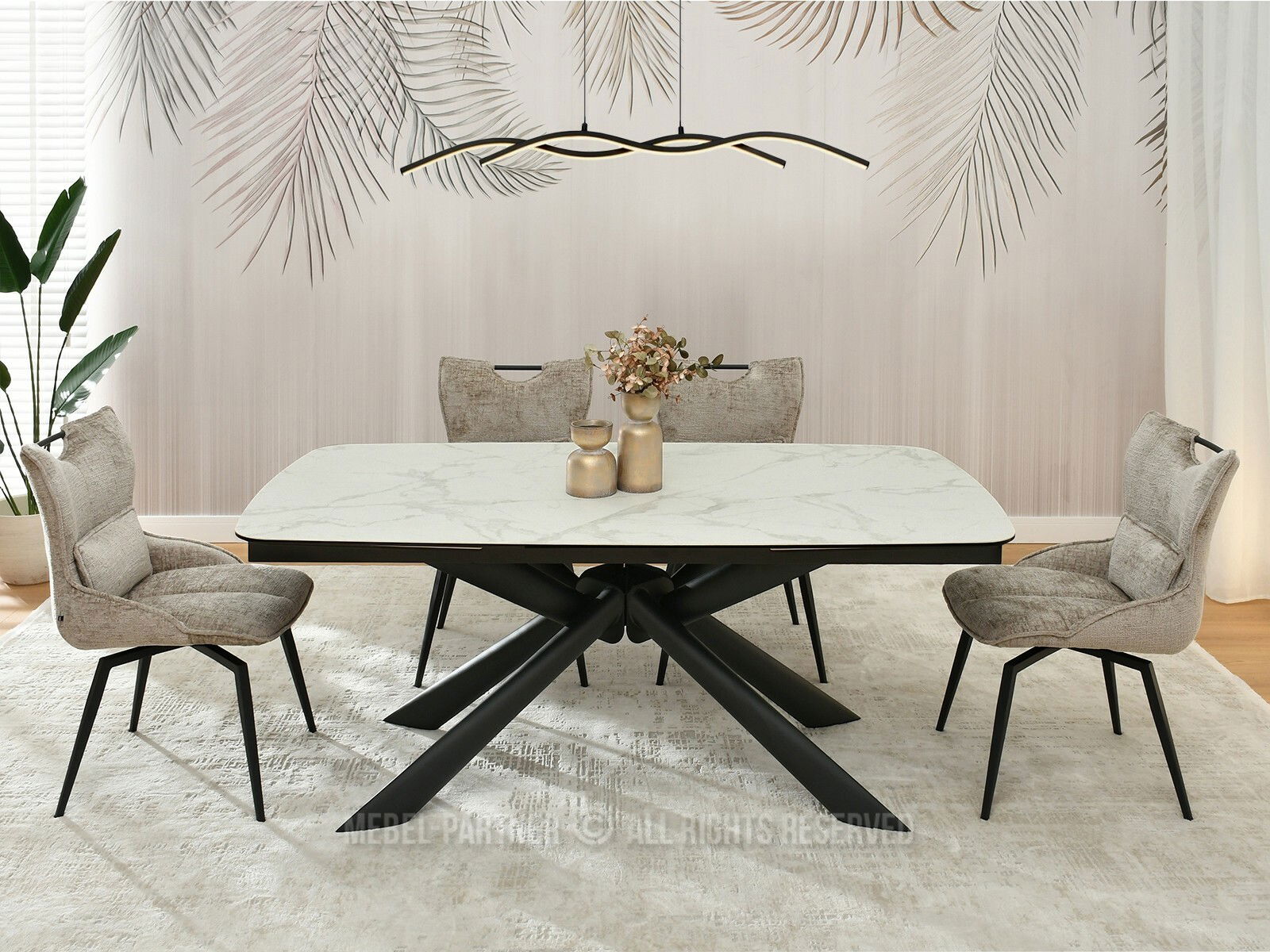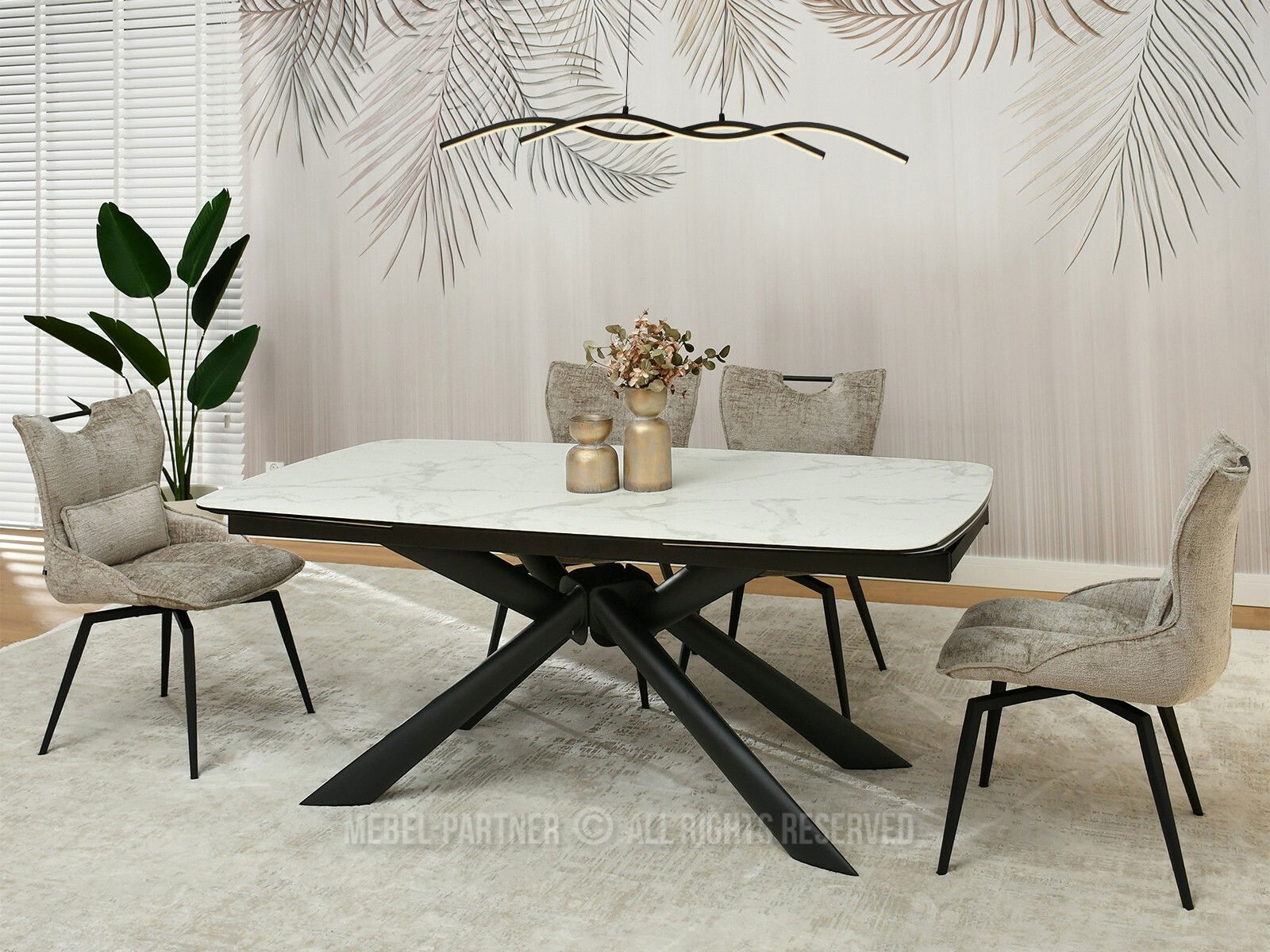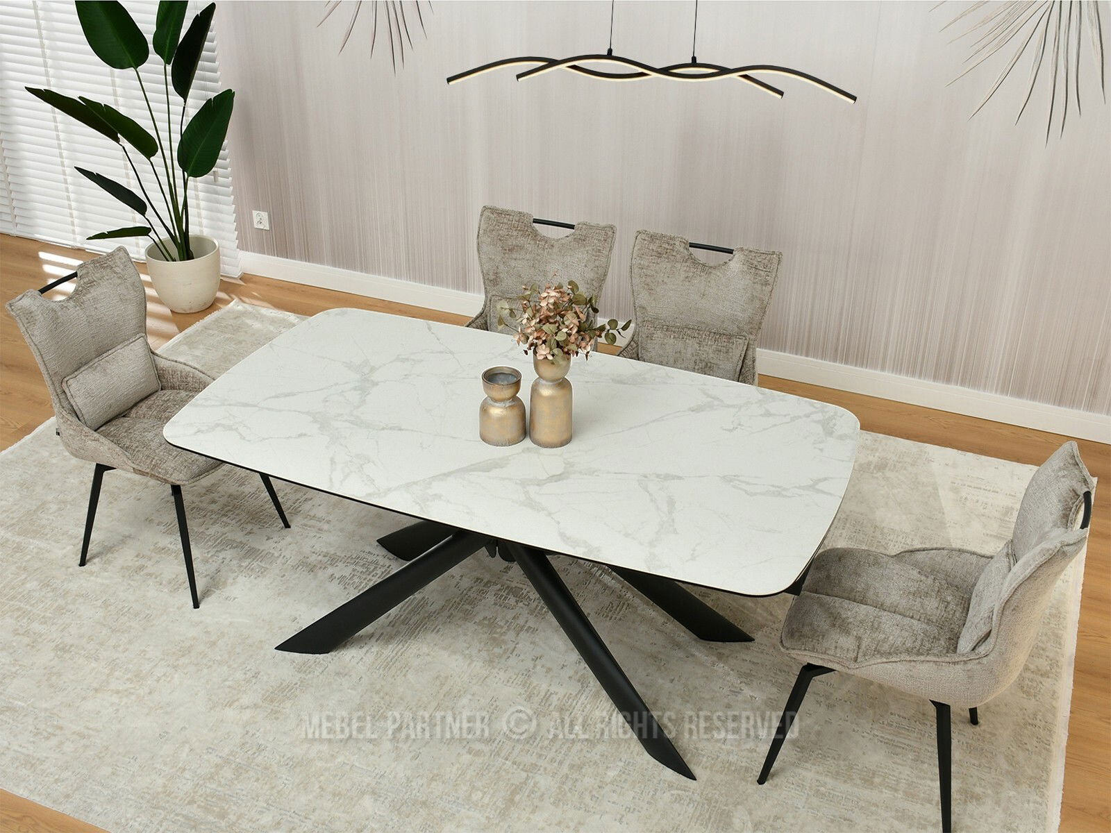 Jídelní stůl Denzel (bílý mramor + černá)