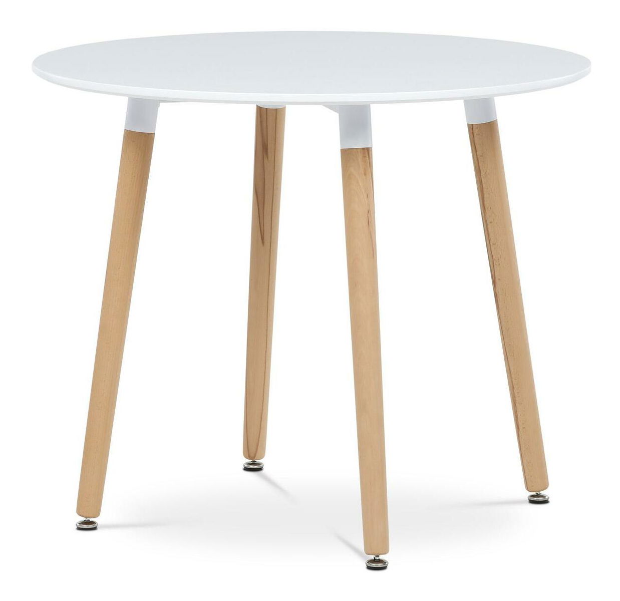 Elegantní bílý jídelní stůl s deskou z MDF a masivníma nohama se stane skvělým doplňkem vaší domácnosti. Matná deska dodává stolu moderní vzhled, který lehce zapadne do každého interiéru. Tento stylový a funkční kousek je ideální volbou pro každodenní používání.