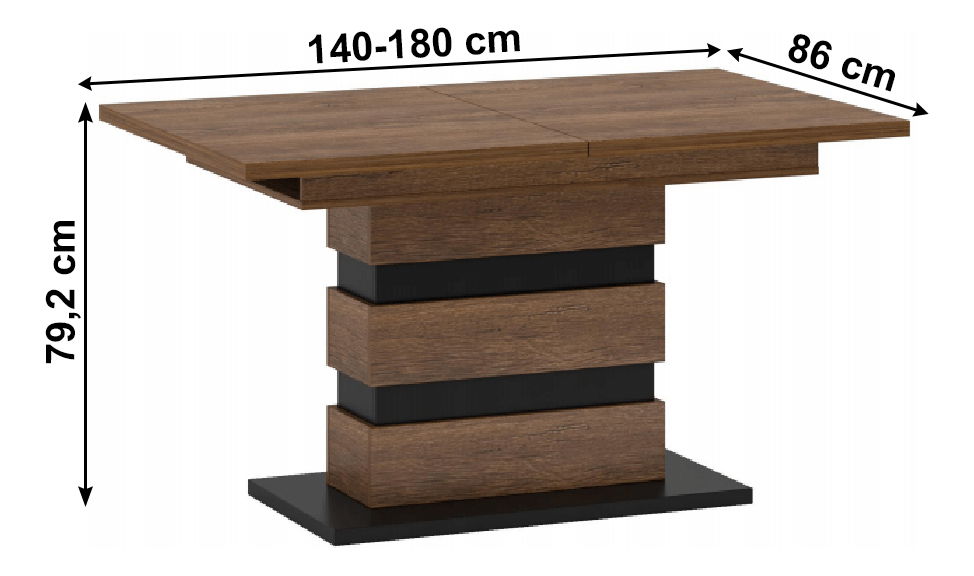 Jídelní stůl Diram S (dub bolzano + černá) je elegantní a moderní kousek nábytku, který se hodí pro 6 až 8 osob. S výškou 79,2 cm a hloubkou 86 cm poskytuje dostatek prostoru pro pohodlné stolování. Dub bolzano + černá barva dodává stolu sofistikovaný vzhled, který bude skvěle zapadat do každé moderní a elegantní jídelny. Stůl Diram S je vyroben z kvalitních materiálů, které zaručují dlouhou životnost a odolnost vůči poškození. Tento stůl je ideální volbou pro ty, kdo hledají kvalitní a moderní jídelní stůl.