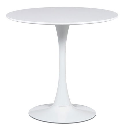Kulatý jídelní stůl s moderním designem se stane ozdobou každé kuchyně nebo jídelny. Kulatá deska stolu má průměr 80 cm a je lakovaná matnou bílou barvou. Noha je vyrobena z pevného kovu.