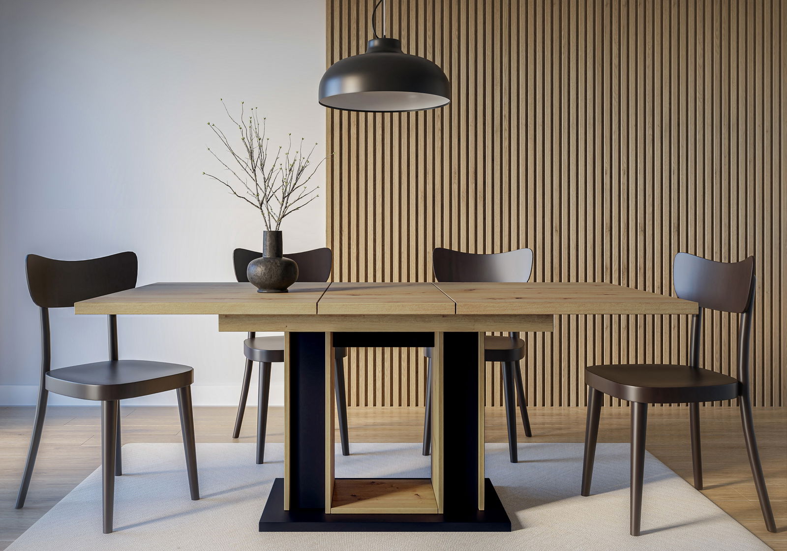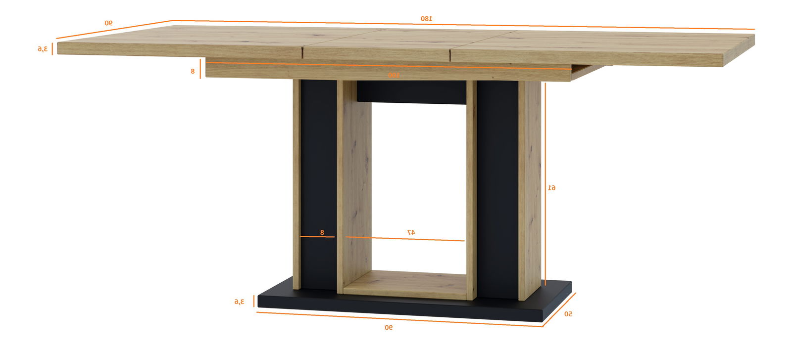 Jídelní stůl Farug (artisan + černá) je dokonalým doplňkem do vaší jídelny nebo kuchyně. Tento stůl nabízí dostatek místa pro 6 až 8 osob, čímž je ideální pro rodinné večeře nebo setkání s přáteli. S výškou 75 cm a šířkou 140-180 cm Artisan + Černá, a hloubkou 90 cm, tento stůl poskytuje dostatek prostoru pro vaše jídla a nápoje. Je vyroben z kvalitního materiálu, který zaručuje trvanlivost a odolnost vůči poškození. Farug (artisan + černá) je skvělou volbou pro ty, kteří hledají pohodlné a stylové řešení pro svoji jídelnu nebo kuchyni.