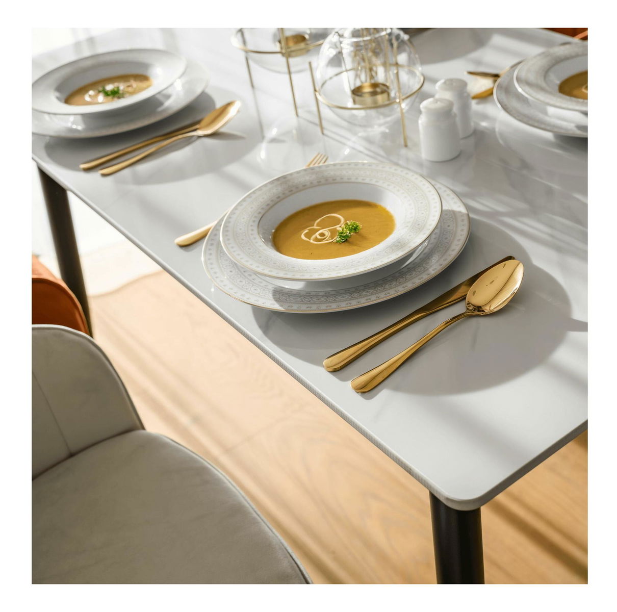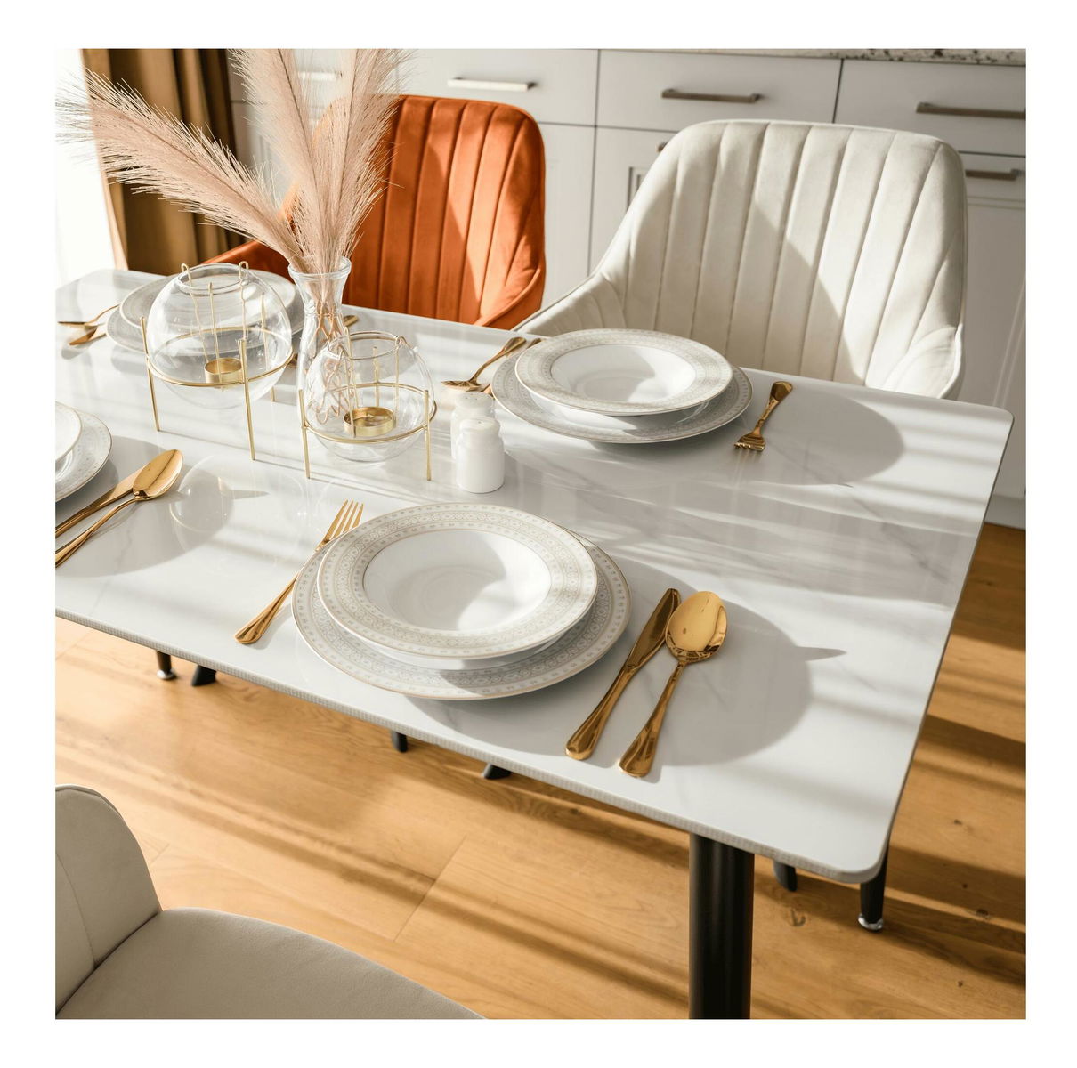 Jídelní stůl Fresia 1 (bílý mramor + černá) (pro 4 osoby)