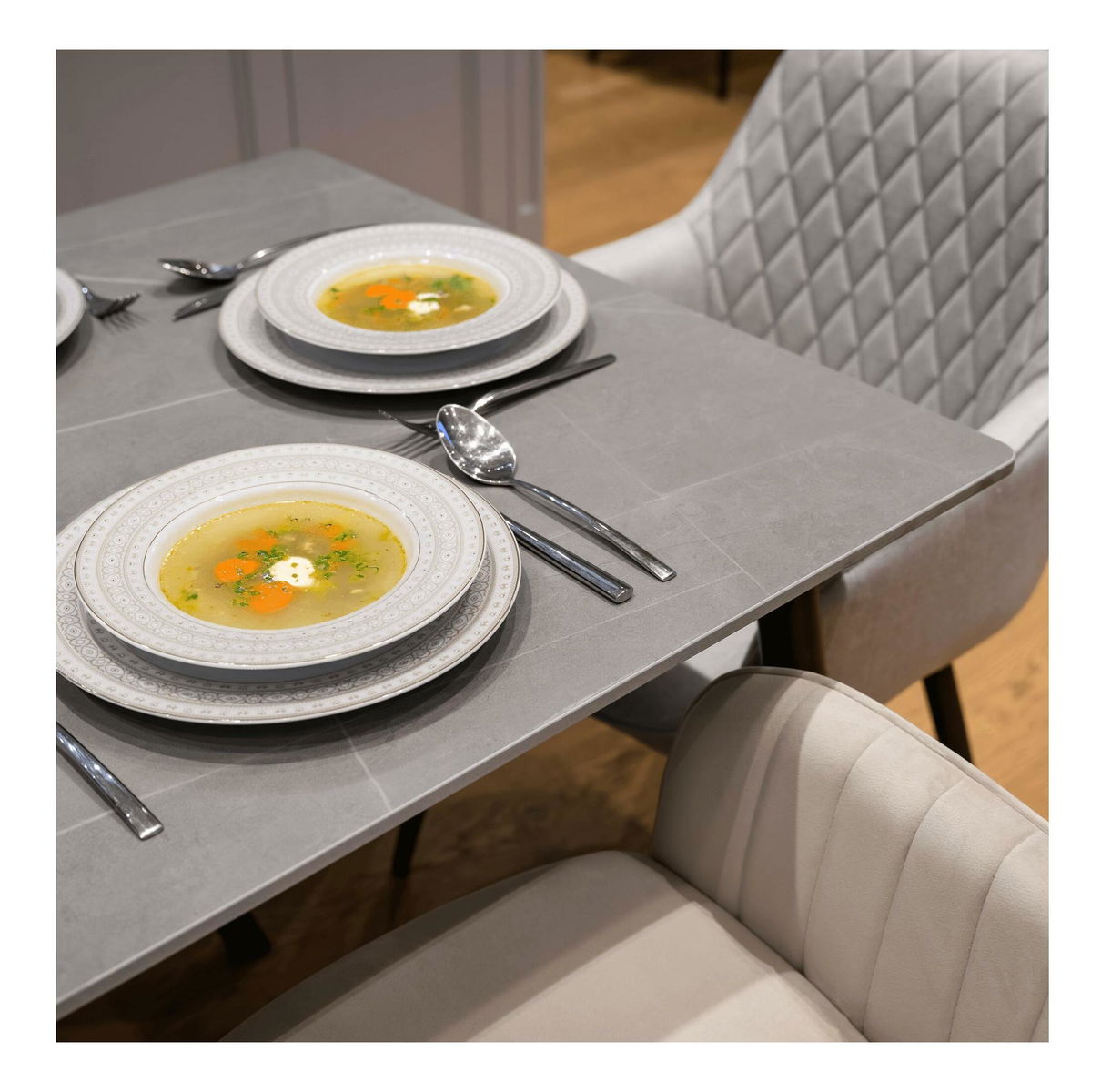 Jídelní stůl Fresia 2 (šedý mramor + černá) (pro 6 osob)