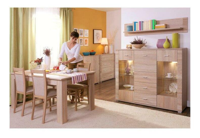 Nábytek je vyráběn z kvalitní laminované DTD v odstínu svěžího a světlého Dubu Sonoma. Svou eleganci naplno projeví primárně ve světlých a větších prostorách. Určitě se bude dobře vyjímat v obývacím pokoji, ale můžete si jím zařídit ložnici, reprezentativní pracovnu, předsíň. Hrany jednotlivých komponentů sektoru Grand jsou ukončeny vroubkovanou lištou.