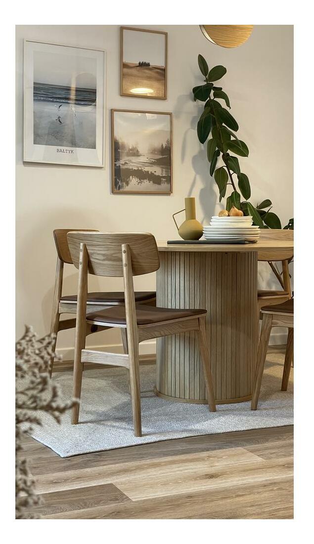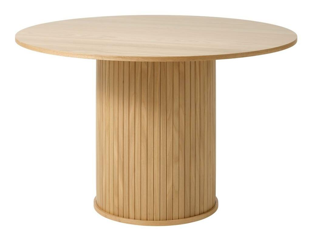 Sníte o estetickém a harmonicky zkomponovaném prostoru, kde budou rádi trávit čas vaši blízcí? Praktická a zároveň mimořádně stylová kolekce nábytku bude tím, co vašemu domovu chybělo! Jídelní stůl Gativl umožní setkat se při společném jídle celé rodiny. Hladká deska ve tvaru dokonalého kruhu si bez problémů poradí s různými prvky stolování, díky čemuž vytvoříte přátelský prostor pro každého člena domácnosti. Vysoká stabilní noha zajistí, že vaši ochutnávku lahodných pokrmů nepřeruší vytrvalé natřásání či kolísání celé konstrukce. Jedinečnost stolku zvýrazňují charakteristické drážky umístěné v jeho spodní části, které jsou charakteristickým znakem celé kolekce. Náš návrh se navíc dokonale hodí k moderním stylům interiéru, což vám výrazně usnadní vytvoření pohodlného a útulného interiéru v souladu s nejnovějšími trendy. Detaily produktu: průměr stolu - 120 cm - ideální pro čtyři osoby, nábytek je vyroben z MDF desky a dubové dýhy, tedy materiálů vysoké životnosti, odolnosti proti zkreslení a krásného vzhledu, povrch je pokryt ozdobnými drážkami, drážky jsou podélné, úzké drážky s malou šířkou a hloubkou, které probíhají paralelně k sobě, stabilní, plochá základna hrubé nohy zabraňuje kývání a kolísání stolu při používání, barva: dub.