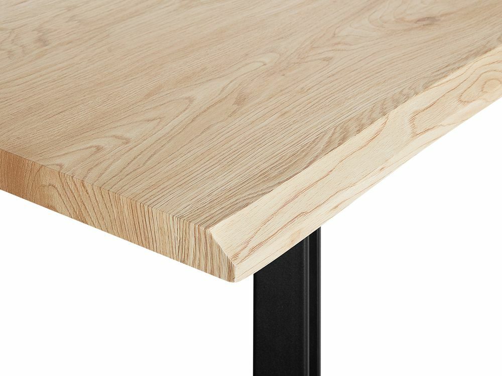 Jídelní stůl se stolovou deskou v barvě světlého dřeva rozjasní váš jídelní prostor. Stůl v moderním minimalistickém designu prosvětlí celou místnost, aniž by vizuálně narušil její vzhled a původní charakter. Stolovou desku doplňují černé kovové nohy, které zaručují výbornou stabilitu stolu a vydrží i dlouhodobé používání.