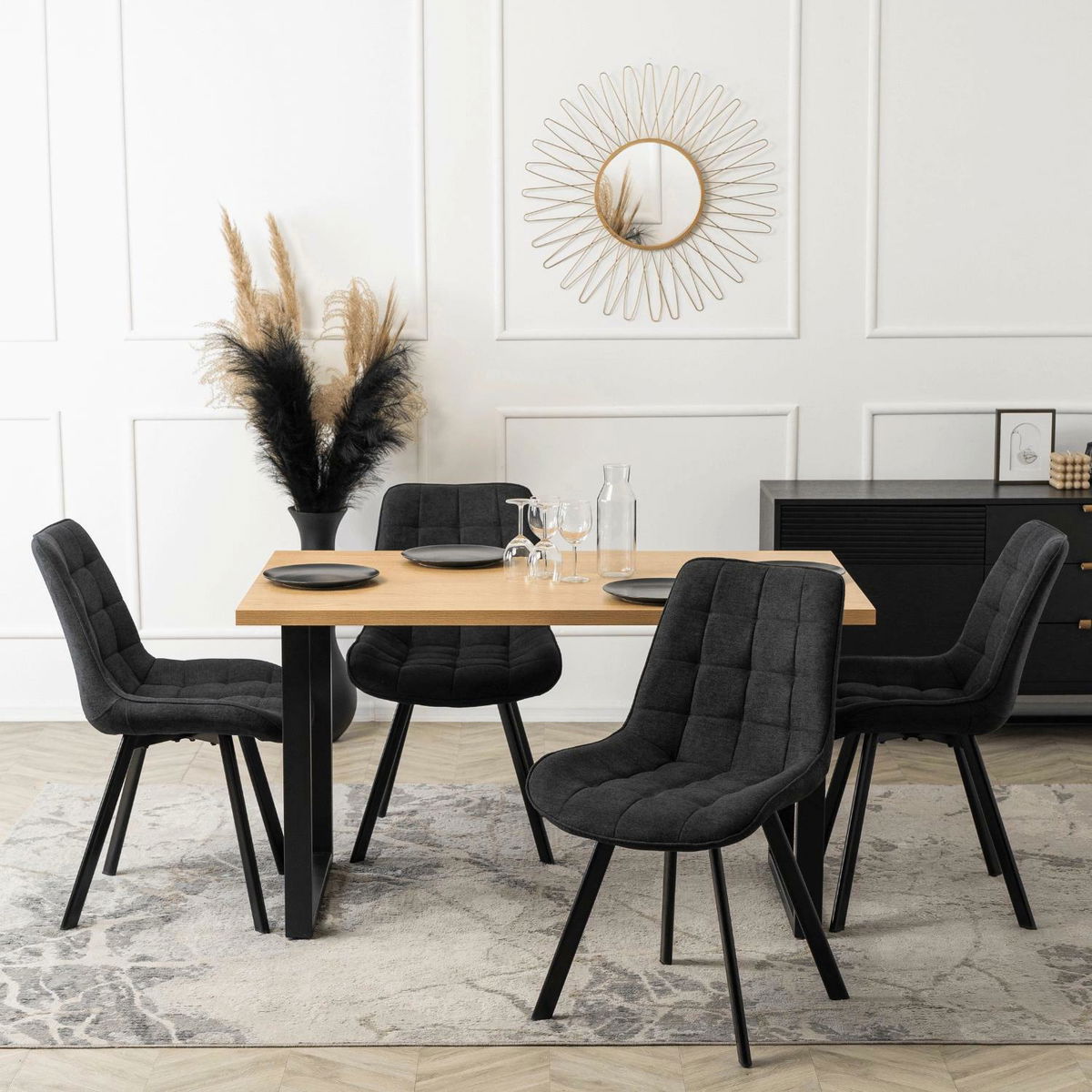 Jídelní stůl Gravamenes (dub zlatý + černá) (pro 6 osob)