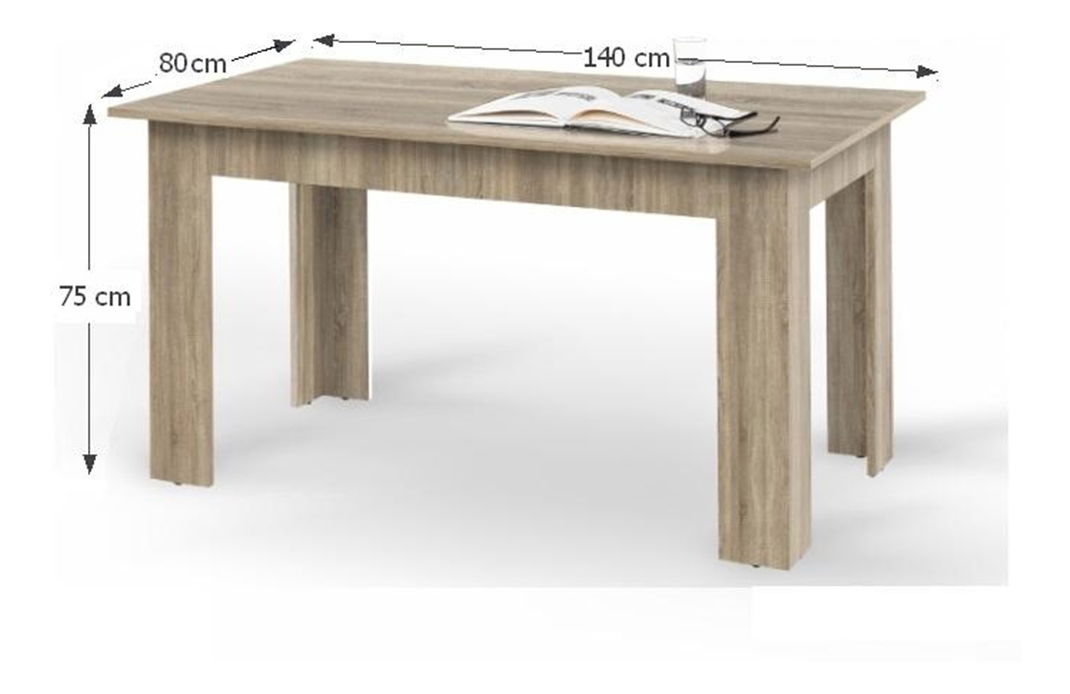 Navzdory svému jednoduchému tvaru je jídelní stůl Groot jako stvořený pro společné chvíle strávené v kruhu nejbližších. Pyšní se rozměrem 140x80 cm, a tak za něj pohodlně usadíte šest lidí, a to ve velkém stylu. Stačí už jen dobře navařit. V barevném provedení dub sonoma zapadne tento skvost téměř všude a sladíte jej s jakýmkoli nábytkem. O dlouhá léta každodenního používání se postará oblíbená, pevná a léty ověřená laminovaná dřevotříska. Jídelní stůl Groot bude tím správným kouskem do vaší jídelny.