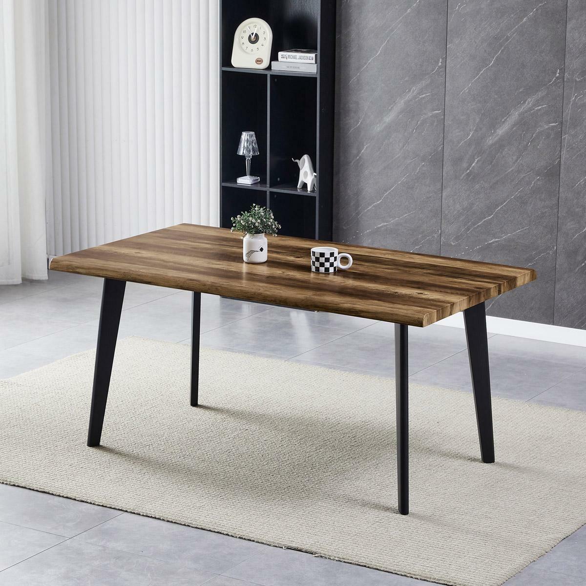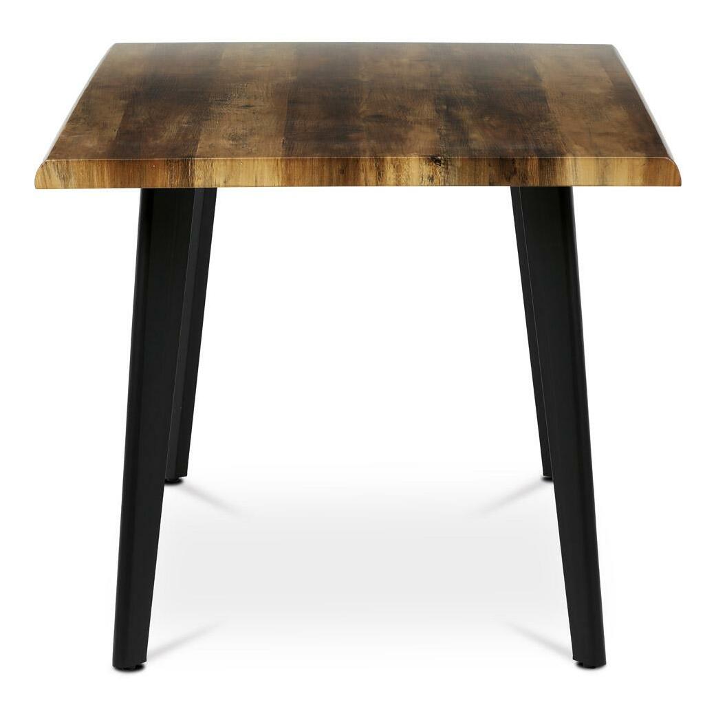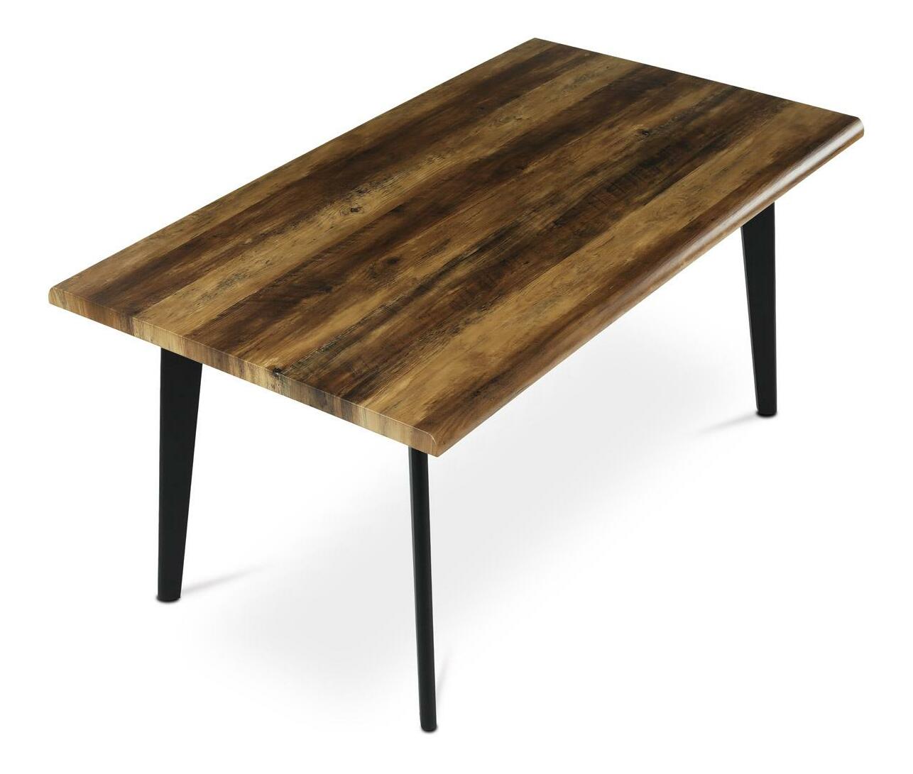 Tento jídelní stůl v přírodním dekoru starého dřeva vnáší do interiéru rustikální kouzlo s moderním nádechem. Obdélníková deska z kvalitního MDF materiálu imituje vzhled opracovaného dřeva a přidává prostoru pro autentičnosti a teple. Černé kovové nohy přidávají industriální kontrast a zajišťují pevnost a stabilitu. Svým nadčasovým designem a praktickými rozměry 160x90x75 cm se tento stůl hodí do různých stylů jídelen a kuchyní. Vyberte si tento elegantní a odolný stůl a dopřejte si pohodlné rodinné stolování s nádechem přírody.
