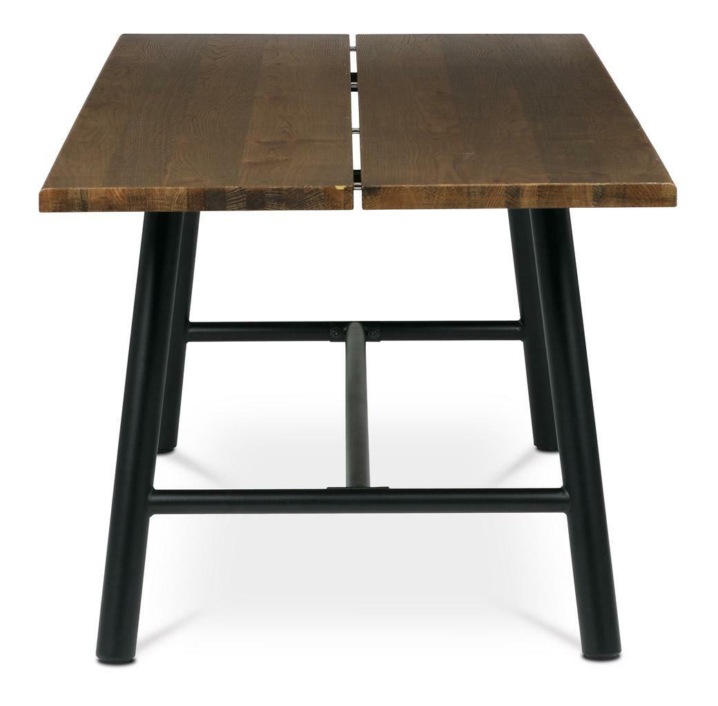 Jídelní stůl v industriálním stylu je skvělou volbou pro velké rodinné večeře. Jeho prostorná dýhová deska v dekoru ořechu dodává interiéru teplý a přírodní nádech, zatímco černé kovové nohy zajišťují stabilitu a odolnost. Obdélníkový tvar a matný povrch podtrhují moderní vzhled stolu. Díky robustní konstrukci se hodí do prostornějších jídelen, kde se stane centrálním prvkem. Stůl se skládá ze dvou samostatných kusů desky, což podtrhuje jeho nadčasový design.