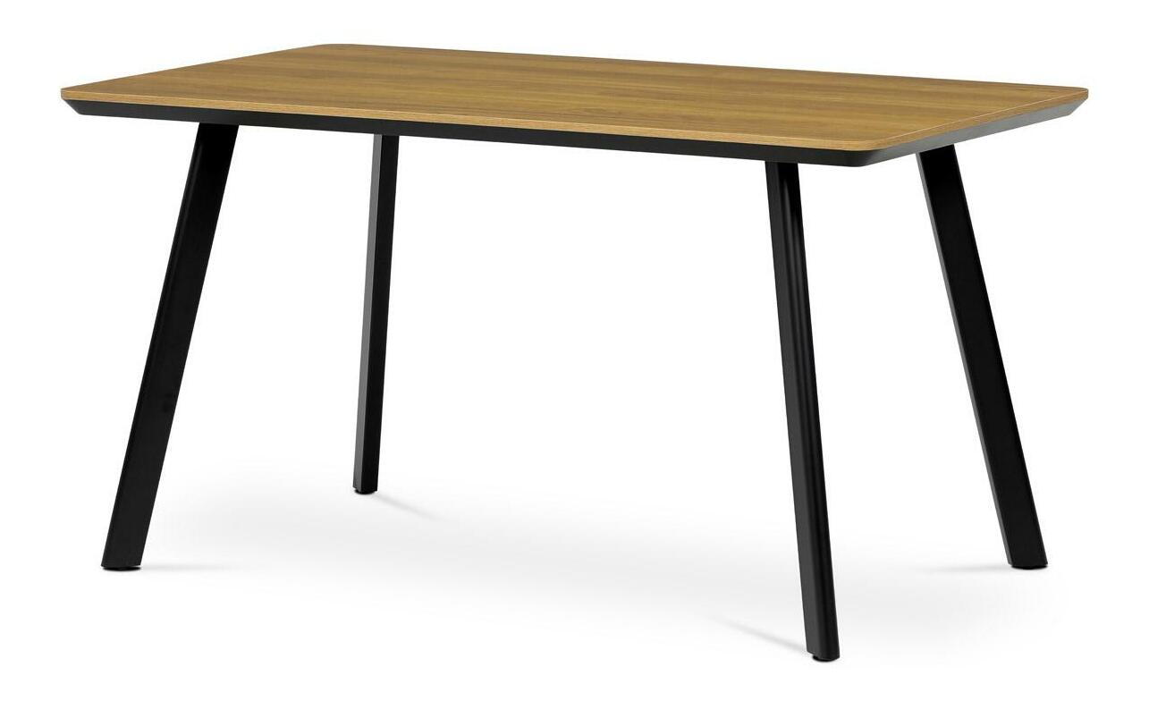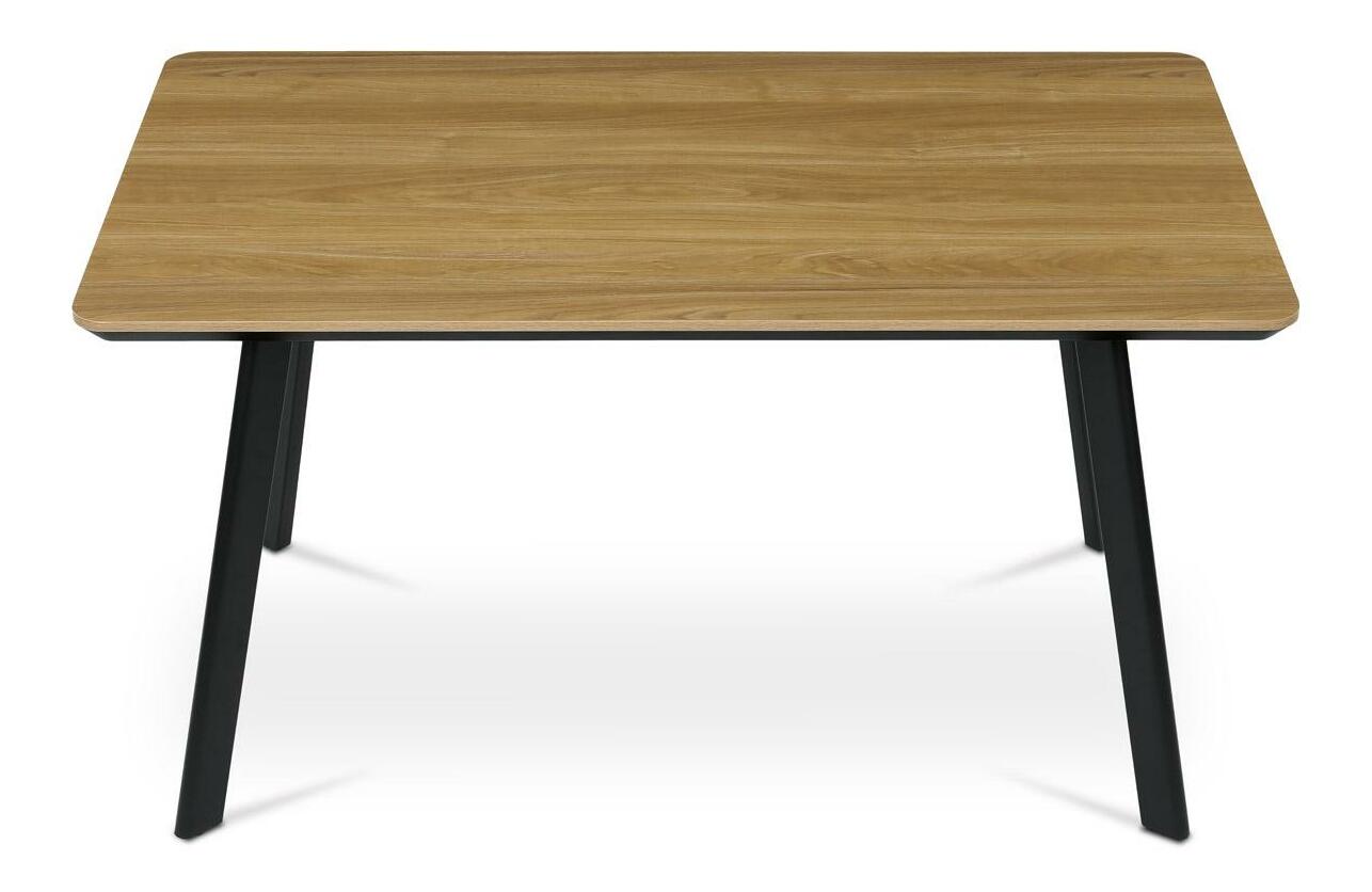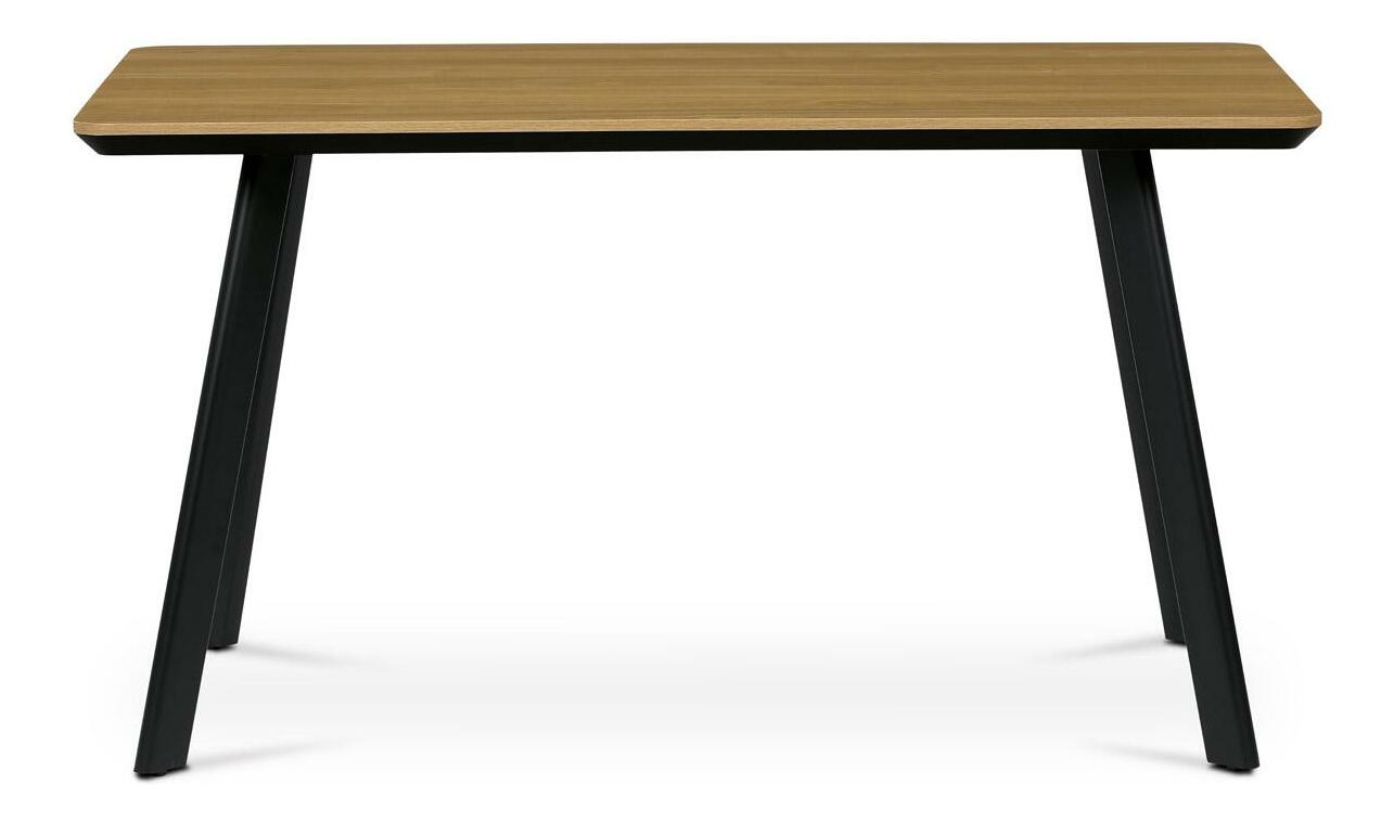 Moderní jídelní stůl přináší snadný a nadčasový design, který se hodí do každého interiéru. MDF deska v dekoru dubu v matném provedení vytváří elegantní kontrast s černýma kovovými nohama. Stůl je pevný, odolný a poskytuje dostatek prostoru pro pohodlné stolování až pro šest osob. Jeho obdélníkový tvar a stabilní konstrukce zajišťují maximální pohodlí při každodenním používání. Díky svému industriálnímu stylu je ideální volbou nejen do moderních kuchyní a jídelen, ale také do kancelářských prostor.