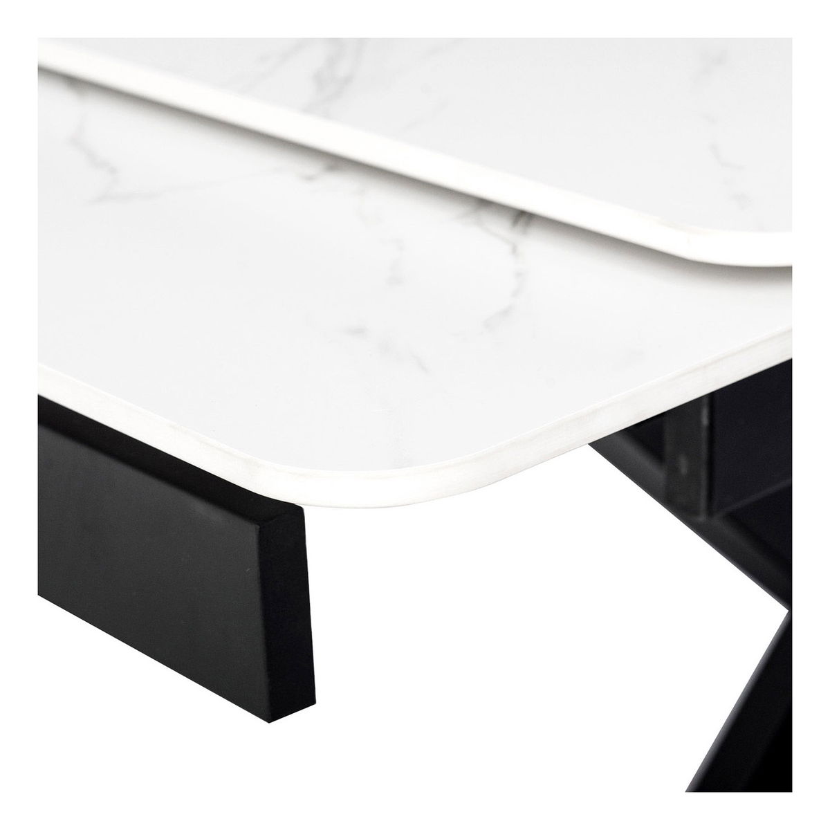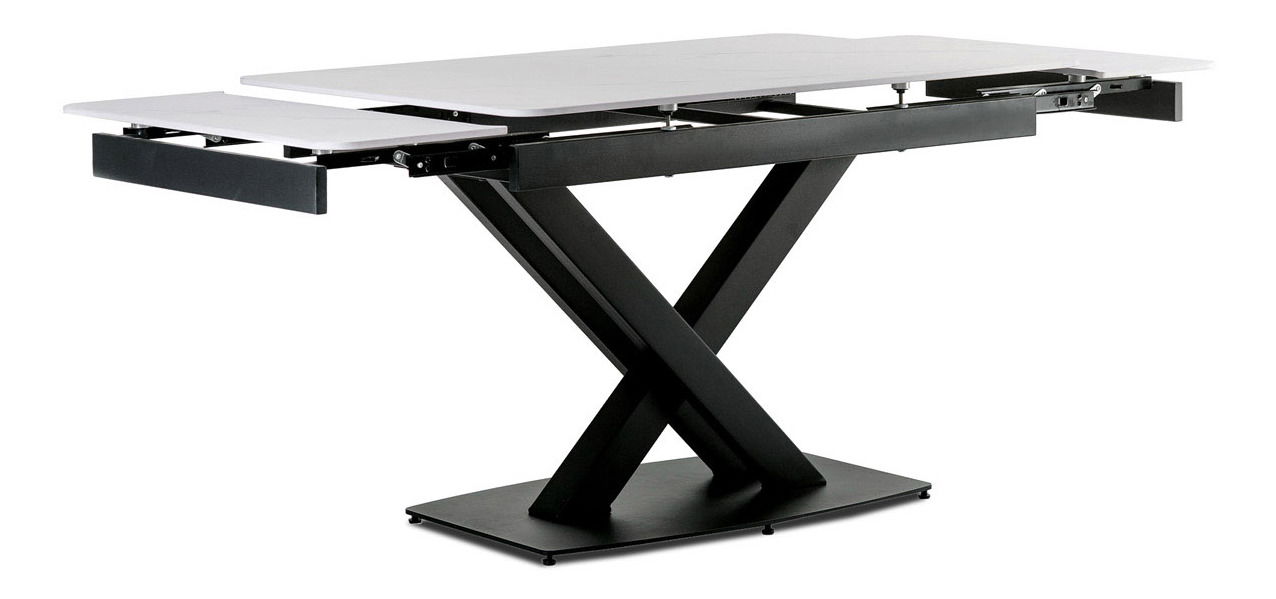 Hefin je designový jídelní rozkládací stůl v industriálním minimalistickém stylu. Vrchní stolová deska je z tvrzené keramiky ve stylu „Italský sněhobílý mramor“. Konstrukce stolu je celokovová s nástřikem práškového vypalovacího laku v matném černém odstínu. Podstavec je na spodní části vybaven šesti rektifikačními patkami, které dovolují vyrovnat stůl i na mírně zvlněné podlaze zatímco plastové kluzáky na patkách eliminují možnost poškození povrchu podlahy. Ke stolu lze umístit až 8 židlí.
