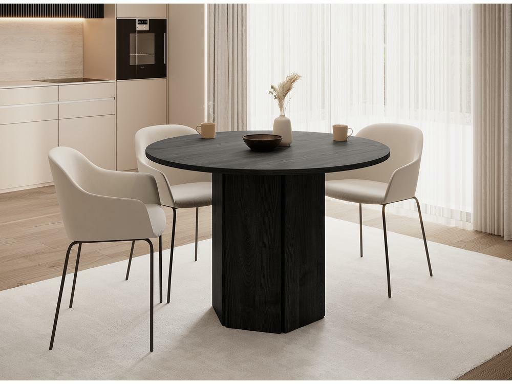 ZobrazitHledáte designový stůl, který spojuje funkčnost s moderním vzhledem? Stolek splní vaše očekávání Kulatý stolek je univerzální kus nábytku, který se hodí do mnoha interiérů a přemění je na stylové pokoje přímo z časopisů o interiérovém designu. Stůl má velkou kulatou desku a jednu pevnou nohu ve tvaru šestiúhelníku, která dodává nábytku stabilitu a dodává celku eleganci Podrobnosti o produktu: Nábytek je vyroben z laminované desky v barvě R34032 NW Portland Ash Black. Černé nožičky o výšce 0,5 cm z odolného materiálu připevněné ke každé desce, nepoškrábají podlahu, vzdálenost od nohy k okraji desky: 28,6 cm, výška desky. noha: 72 cm, stolová deska o průměru 110 cm pojme 4 osoby.