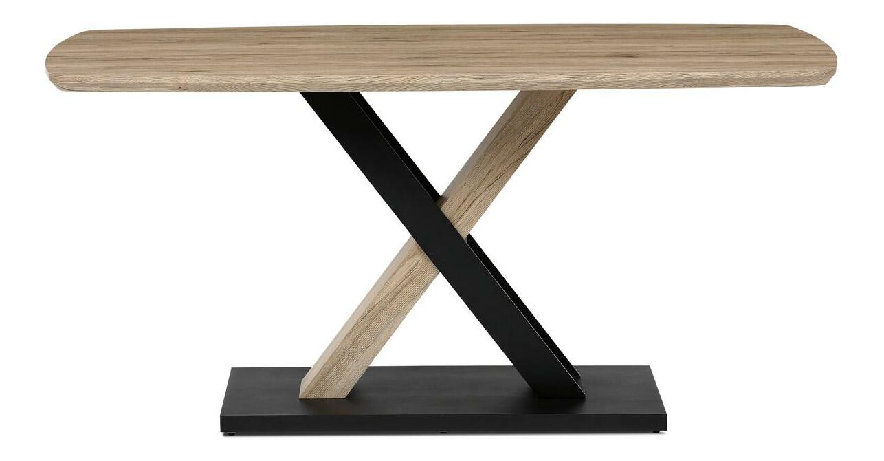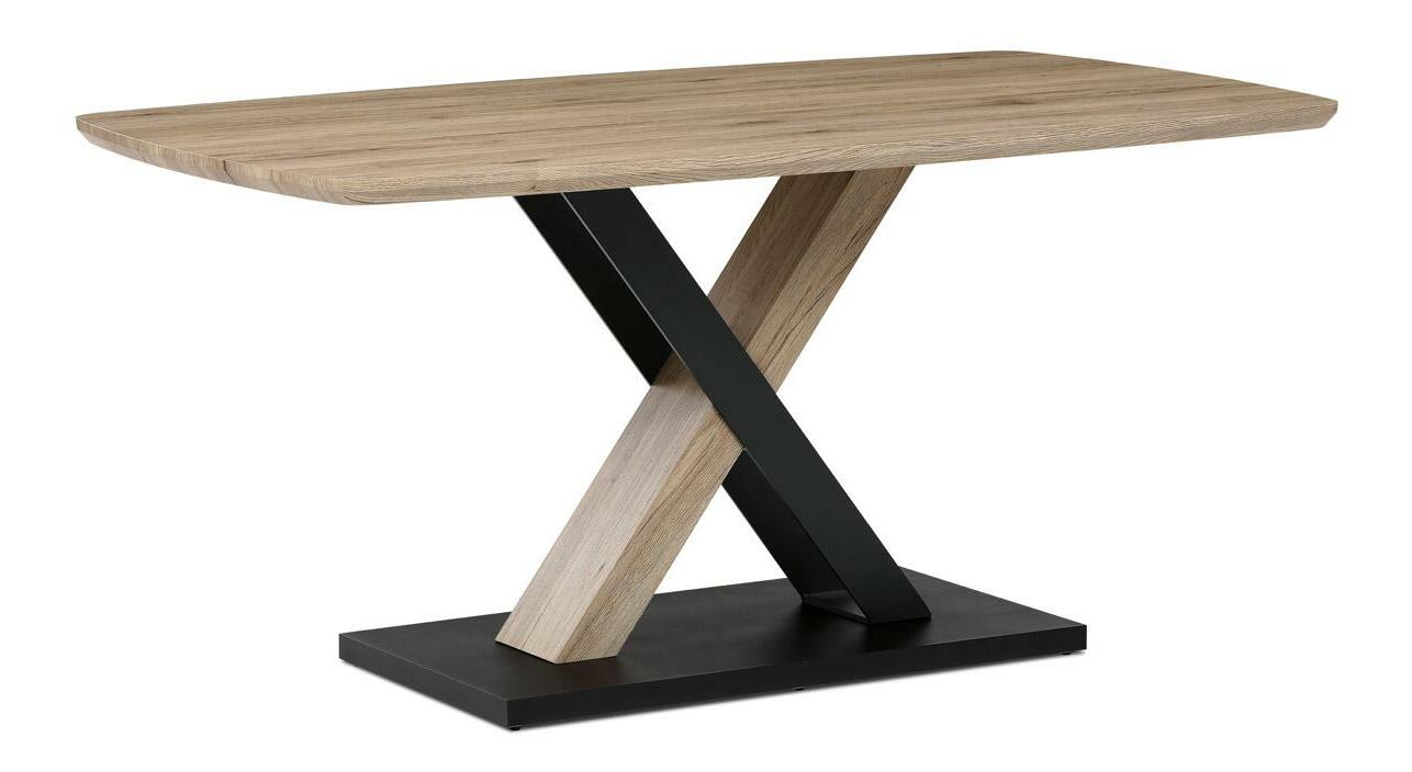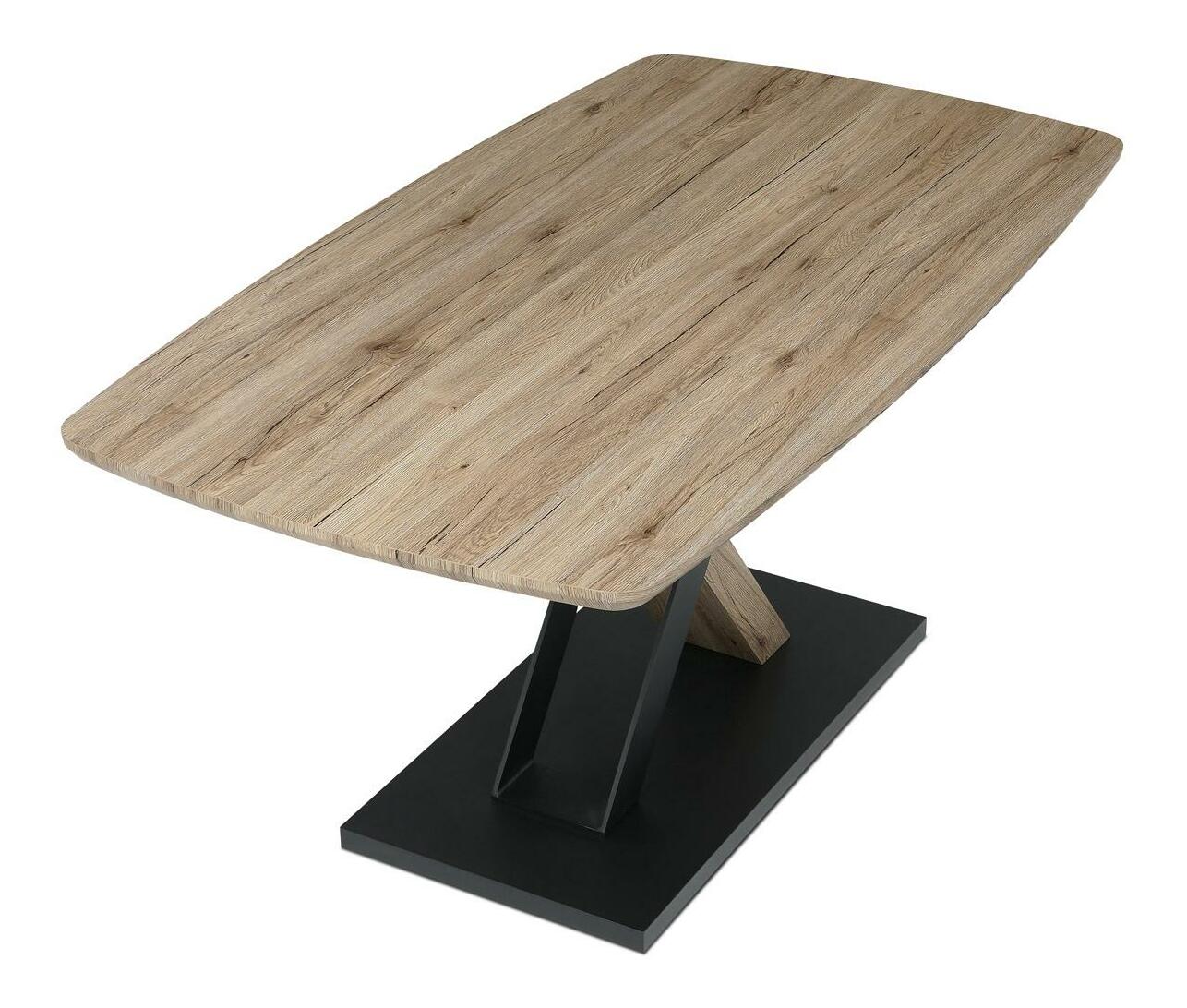 Moderní jídelní stůl je skvělou volbou pro stylové interiéry. Jeho robustní deska z MDF v dekoru dubu San Remo dodává prostoru přírodní eleganci, zatímco centrální kovová podnož v kombinaci s MDF zajišťuje stabilitu a originální vzhled. Atypický zaoblený tvar desky podtrhuje jeho jedinečnost, díky čemuž se stane středobodem každé jídelny. Tento stůl je ideální pro rodinná posezení i slavnostní večeře, přičemž svým nadčasovým designem pozvedne každý interiér.