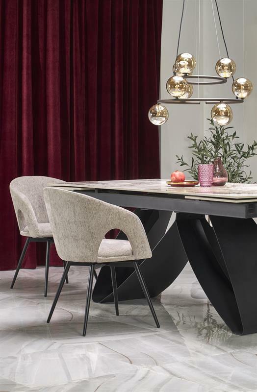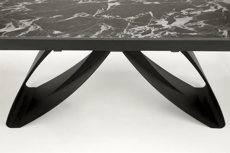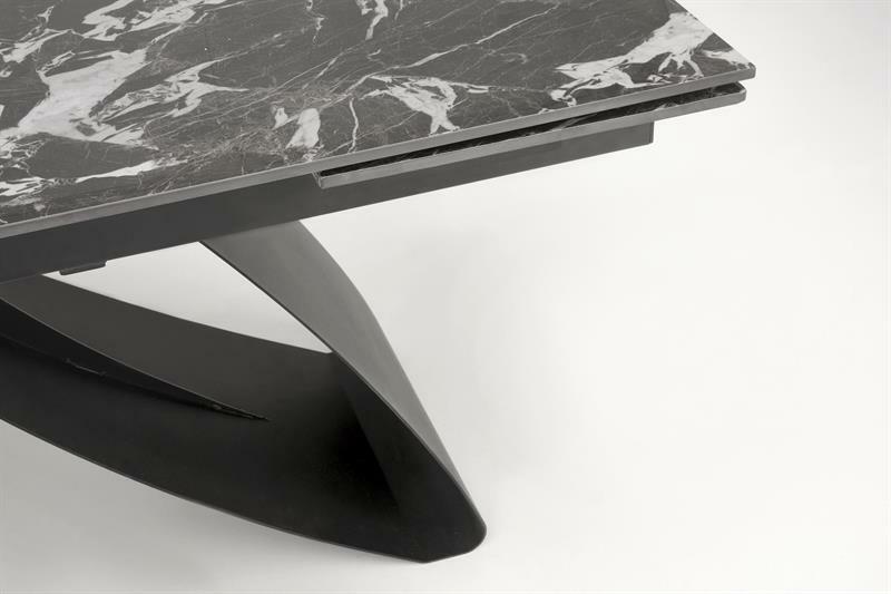 Jedinečnost stolu Hillary zvýrazňuje kamenná deska v elegantním černém odstínu mramoru. Nejde však o obyčejný černý mramor – jedná se o sofistikovanou, dekorativní formu tohoto ušlechtilého kamene, která dodává stolu jedinečný charakter a eleganci. Každý detail byl pečlivě promyšlen, aby vytvořil harmonický a estetický celek. Možnost rozšíření stolu Hillary jej navíc činí nejen designovým, ale i funkčním. Ideální pro intimní setkání i větší večírky, zaručující pohodlí a styl zároveň.