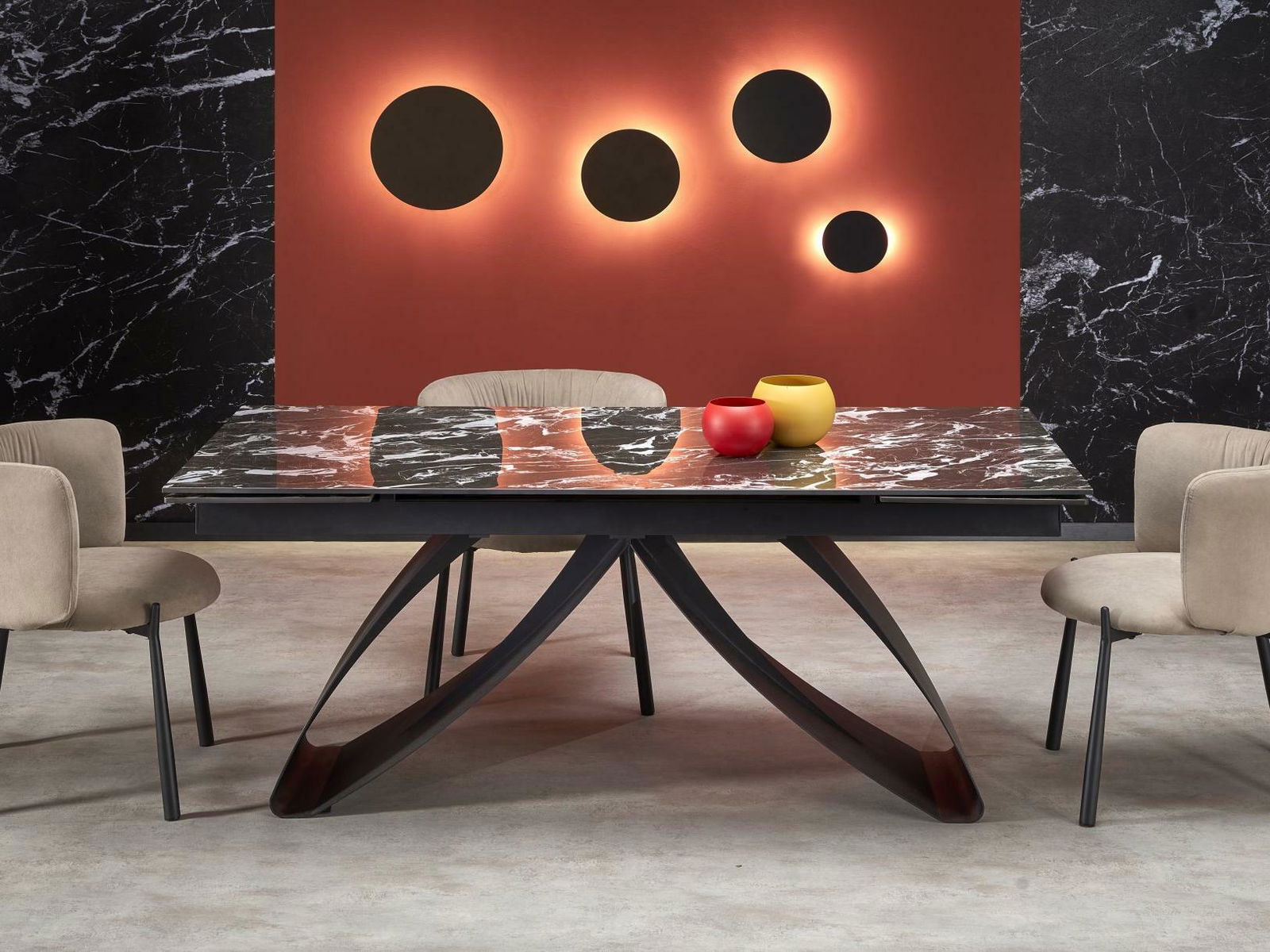 ZobrazitJedinečnost stolu Hillary zvýrazňuje kamenná deska v elegantním černém odstínu mramoru. Nejde však o obyčejný černý mramor – jedná se o sofistikovanou, dekorativní formu tohoto ušlechtilého kamene, která dodává stolu jedinečný charakter a eleganci. Každý detail byl pečlivě promyšlen, aby vytvořil harmonický a estetický celek. Možnost rozšíření stolu Hillary jej navíc činí nejen designovým, ale i funkčním. Ideální pro intimní setkání i větší večírky, zaručující pohodlí a styl zároveň.