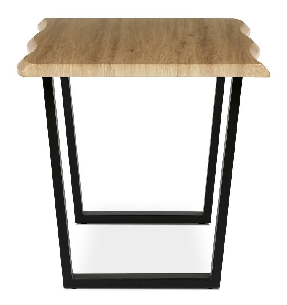 Jídelní stůl v industriálním stylu přinese do vaší jídelny výrazný designový prvek. Deska stolu v dekoru divokého dubu nabízí atraktivní strukturu a odolnost díky kvalitní MDF. Působivý vzhled je podtržen černýma kovovými nohami, které poskytují stabilitu a vytvářejí moderní kontrast k odstínu divokého dubu desky. Atypický tvar desky dodává stolu originalitu, zatímco jeho pevná konstrukce zajišťuje dlouhou životnost. Tento stůl je ideální pro milovníky designu, kteří hledají spojení funkčnosti a stylu.