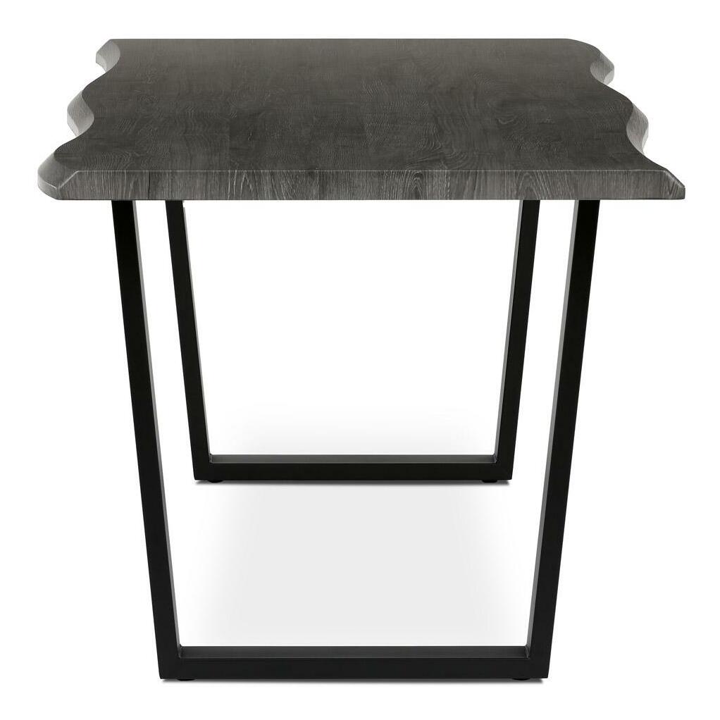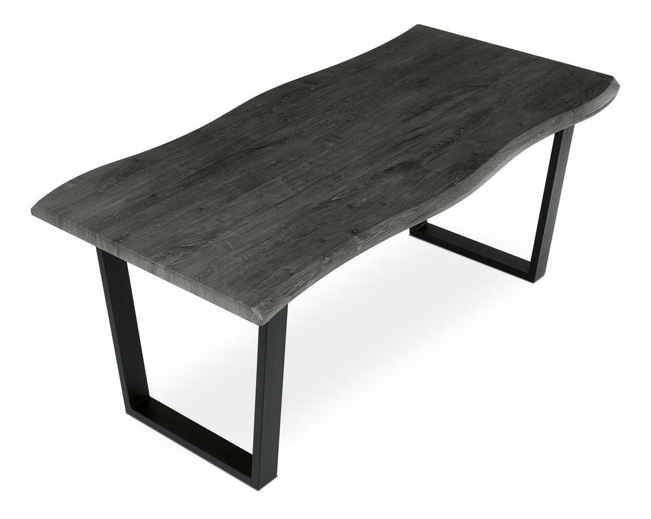 Jídelní stůl v industriálním stylu přinese do vaší jídelny výrazný designový prvek. Deska stolu v dekoru divokého dubu s šedým povrchem nabízí atraktivní strukturu a odolnost díky kvalitní MDF. Působivý vzhled je podtržen černými kovovými nohami, které poskytují stabilitu a vytvářejí moderní kontrast k šedému odstínu desky. Atypický tvar desky dodává stolu originalitu, zatímco jeho pevná konstrukce zajišťuje dlouhou životnost. Tento stůl je ideální pro milovníky designu, kteří hledají spojení funkčnosti a stylu.