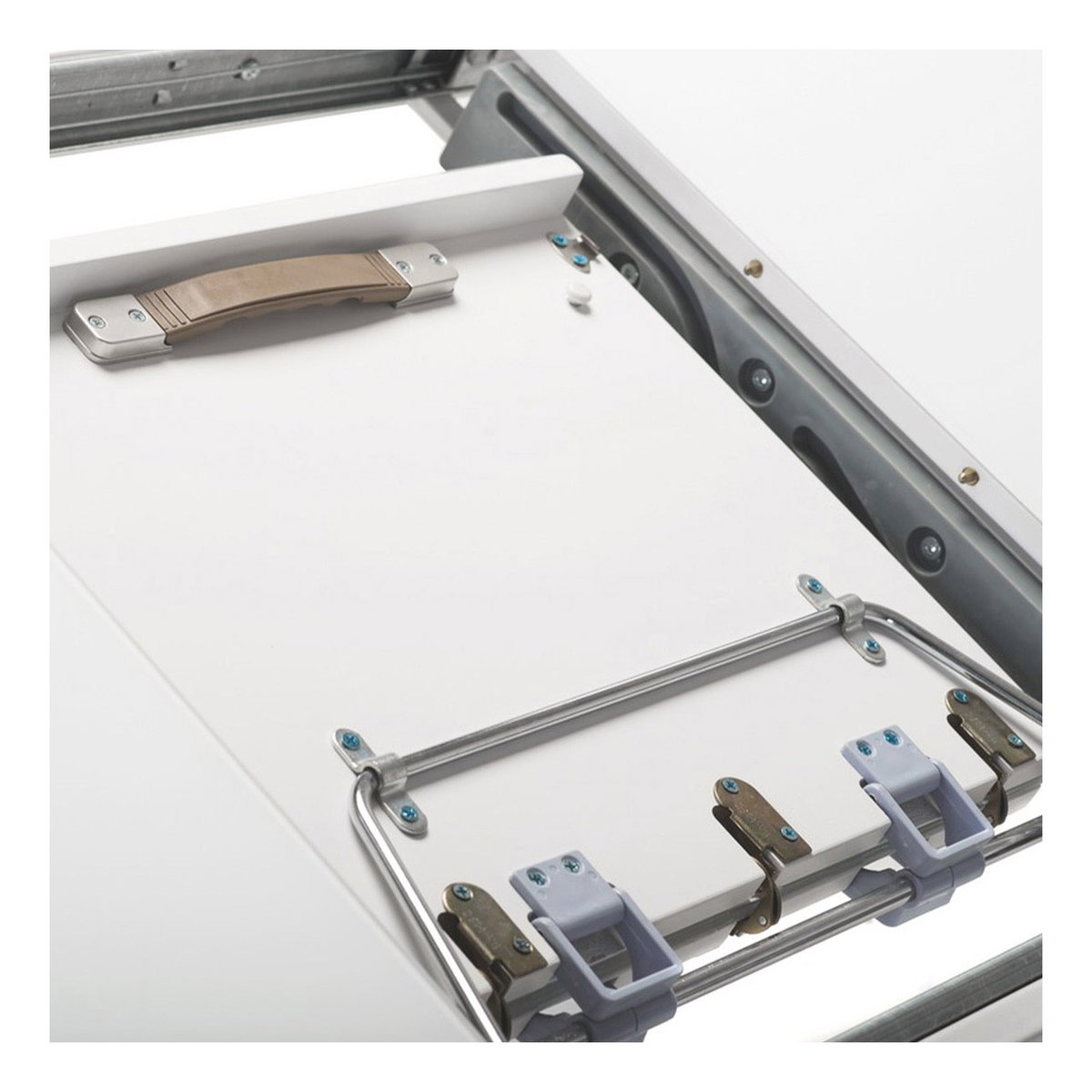 Hreidmar je designový jídelní rozkládací stůl s vrchní stolovou deskou z tvrzeného skla. Rozkládací díl je také kryt sklem jako celá stolová deska, což nepatří ke standardům a řadí stůl do vyšší kategorie. Podkladová deska a centrální noha je z MDF. Podstavec je také z MDF a je kryt sklem. Ze spodní části je opatřen plastovými kluzáky, které zabraňují poškození povrchů tvrdých podlah. Mechanické části stolu jsou kovové. Ke stolu lze umístit až 6 židlí.