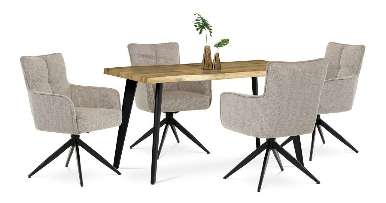 ZobrazitJídelní stůl o rozměru 140 x 80 cm v dekoru divoký dub v kombinaci s černými kónickými kovovými nohami v rozích zaujme svým líbivým stylem i zpracováním. Je vyroben v minimalistickém designu, v kontrastu světlé desky a černého laku na nohou. Výborně se hodí nejen do industriálních, ale také moderních a klasicky laděných jídelen, kuchyní a obývacích prostor. Tady vynikne svou elegancí. Čisté linie nastavují okouzlující akcenty a podtrhují útulnou atmosféru v interiéru. Tento jídelní stůl Vás zve nejen na odpočinek, ale také na setkávání s rodinou i přáteli ve svátečních i všedních okamžicích. Stolová deska je z MDF desky o tloušťce 4 cm. Po delších stranách tváře je zkosená pod úhlem téměř 45° v nepravidelných liniích, což podtrhuje její přírodní styl. Kovové nohy obdélníkového průřezu jsou opatřeny kvalitním práškovým lakem v černé matné barvy. Ve spodní části jsou opatřeny plastovými rektifikačními kluzáky, zabraňující poškození podlahové krytiny a garantující dokonalé vyvážení celého stolu. Výška stolu je 75 cm. Ke stolu lze umístit až 6 židlí.