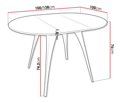Rozkládací jídelní stůl je ideální volbou pro ty, kdo hledají pohodlí a styl. Kulatý roztahovací stůl Izzurto je moderním návrhem na vybavení jídelny. Originální design nábytku osvěží design interiéru a podtrhne dobrý vkus majitelů bytu. Kovové nožičky nábytku se směrem dolů zužují a dodávají mu optickou lehkost. Tato úprava přináší výhody každému interiéru, i když nejlépe funguje v malém obývacím pokoji. Dekorativní hodnotu stolu dokazuje i jeho deska. K dispozici v několika módních barvách, prvek vypadá krásně s tmavým základem. Vyzdvihuje nejlepší vlastnosti nábytku a výhody uspořádání celé místnosti. Rozměry: délka: 100 cm, délka v rozloženém stavu: 138 cm, šířka: 100 cm, výška: 76 cm Provedení: 18 mm silná laminovaná deska, ABS hrana silná 2 mm, ocelové nohy s práškovým nástřikem černé barvy, roztahovací stůl Záruka: 24