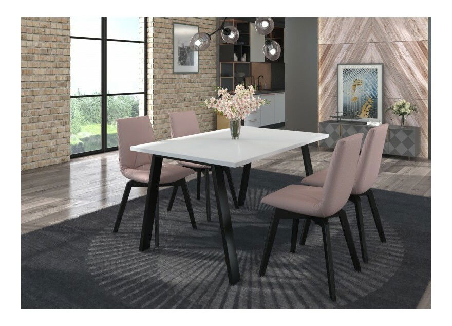 Jídelní stůl Kermit 138x90 (bílá) je krásný a robustní stůl s černýma kovovými nohami a bílou stolní deskou. Deska je vyrobena z 28 mm materiálu a nohy jsou stříkány práškovou černou barvou. Rozměry nožiček jsou 80 mm x 40 mm a nohy lze polohovat do libovolné vzdálenosti. Montáž stolu je celková a deska stolu není označena montážními otvory. Tento stůl je vhodný pro 4-6 osob a bude skvělým doplňkem vaší kuchyně nebo jídelny.