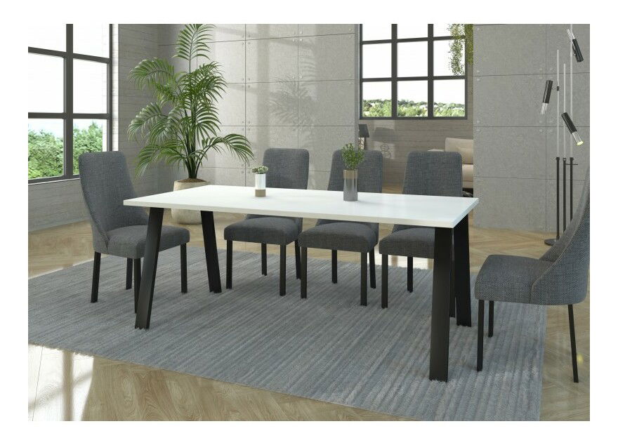 ZobrazitKrásný jídelní stůl Kermit 185x90 v bílé barvě s černýma kovovými nohama je ideální pro 4 až 6 osob. Deska stolu má tloušťku 28 mm a nohy jsou ostříkány práškovou černou barvou. Rozměry nožiček jsou 80 mm x 40 mm a stůl se vyzaduje celková montáž. Nohy lze polohovat do libovolné vzdálenosti, ale deska stolu není označena montážními otvory. Tento industrialní stůl je krásným doplňkem do kuchyně nebo jídelny, kde dodá jemnost bílá barva desky a mohutnost černé nohy.