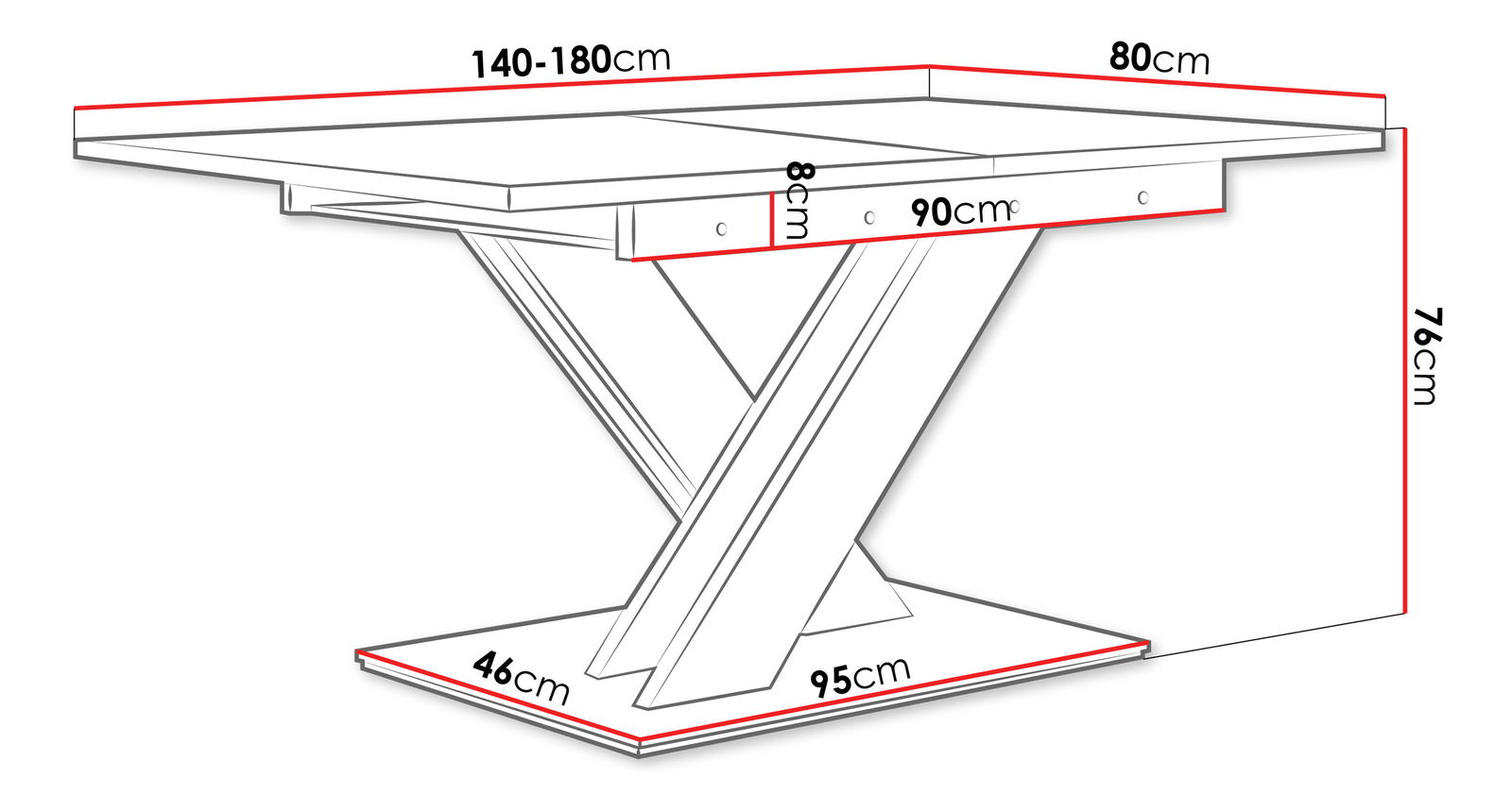 Zařizujete obývací pokoj nebo jídelnu v moderním stylu? Hledáte ten správný stůl?Navrhujeme vám stůl Lezuma! O moderní design stolu se stará deska geometrického tvaru. Stůl můžete kombinovat s nábytkem stejného stylu nebo jej můžete zkombinovat s nábytkem s kovovými částmi pro dosažení kontrastu.Další výhodou stolu je možnost rozložení. Po rozložení má stůl šířku 180 cm, před rozložením 140 cm.Rozměry: