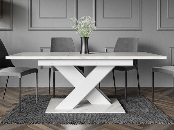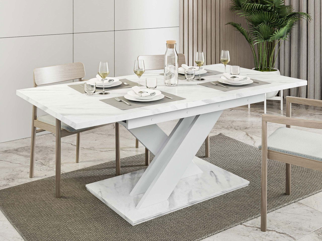 Jídelní stůl Lezuma (bílý mramor + bílá) *výprodej
