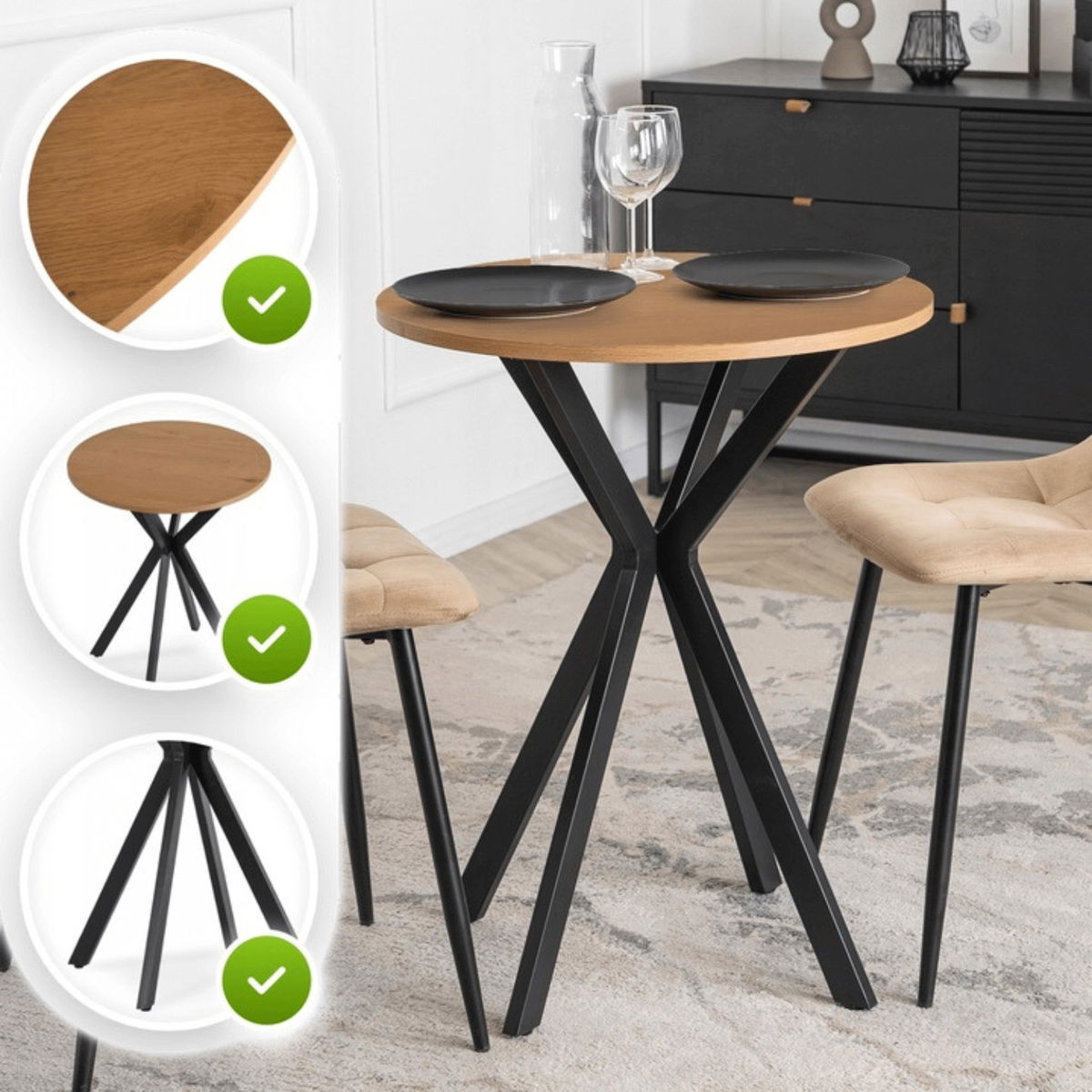 Jídelní stůl Loren 60 (dub zlatý + černá) (pro 4 osoby)