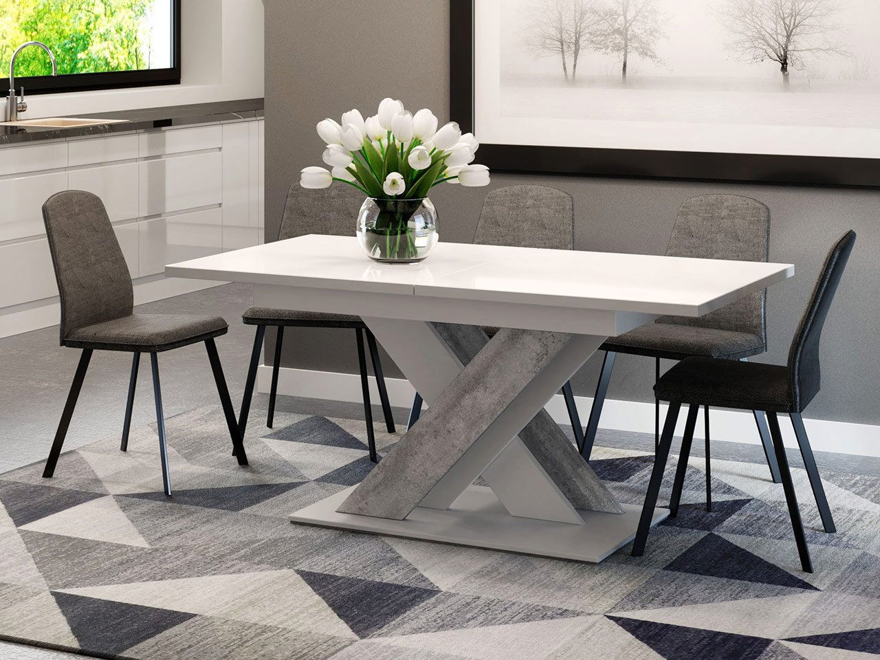 Jídelní stůl Lumenza (bílá + beton)