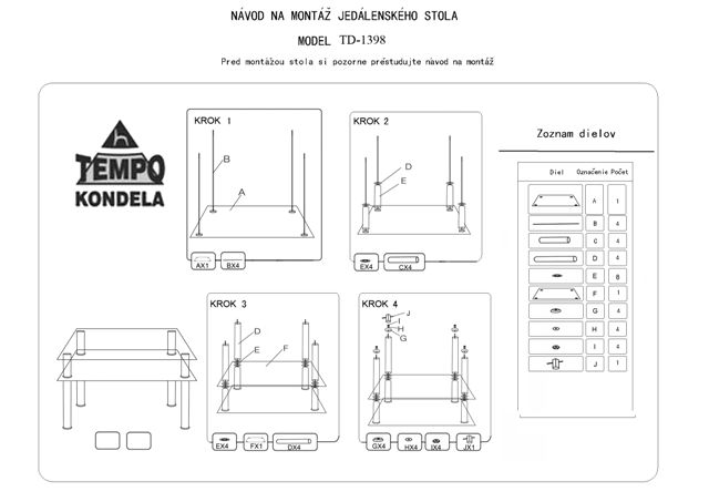 Jídelní stůl Naneta TD-1398 (pro 4 osoby)