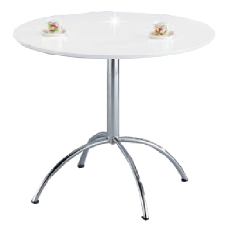 Kulatý jídelní stůl vhodný do menších prostorů. Deska stolu je vyrobena z MDF v barevném provedení lesk bílý. Doplněna je o chromová podstava.