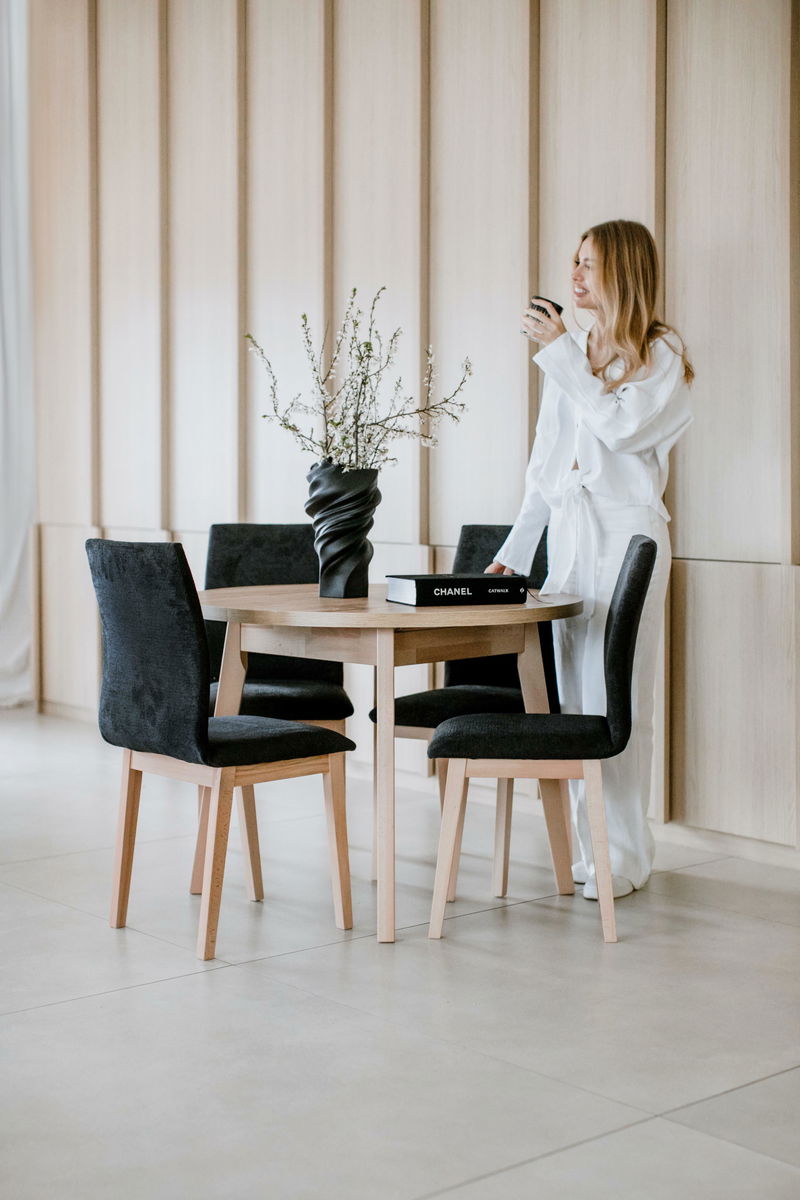 S týmto krásnym okrúhlym stolom som veľmi spokojná, je nádherný, je to ten štýl, ktorý sa mi veľmi páči. Jediná malá nevýhoda je len v tom, že stredová doska, ktorá slúži na rozťahovanie sa nedá odložiť pri stiahnutý pod stolom, ale ju musím dať mimo. Inak je všetko ok