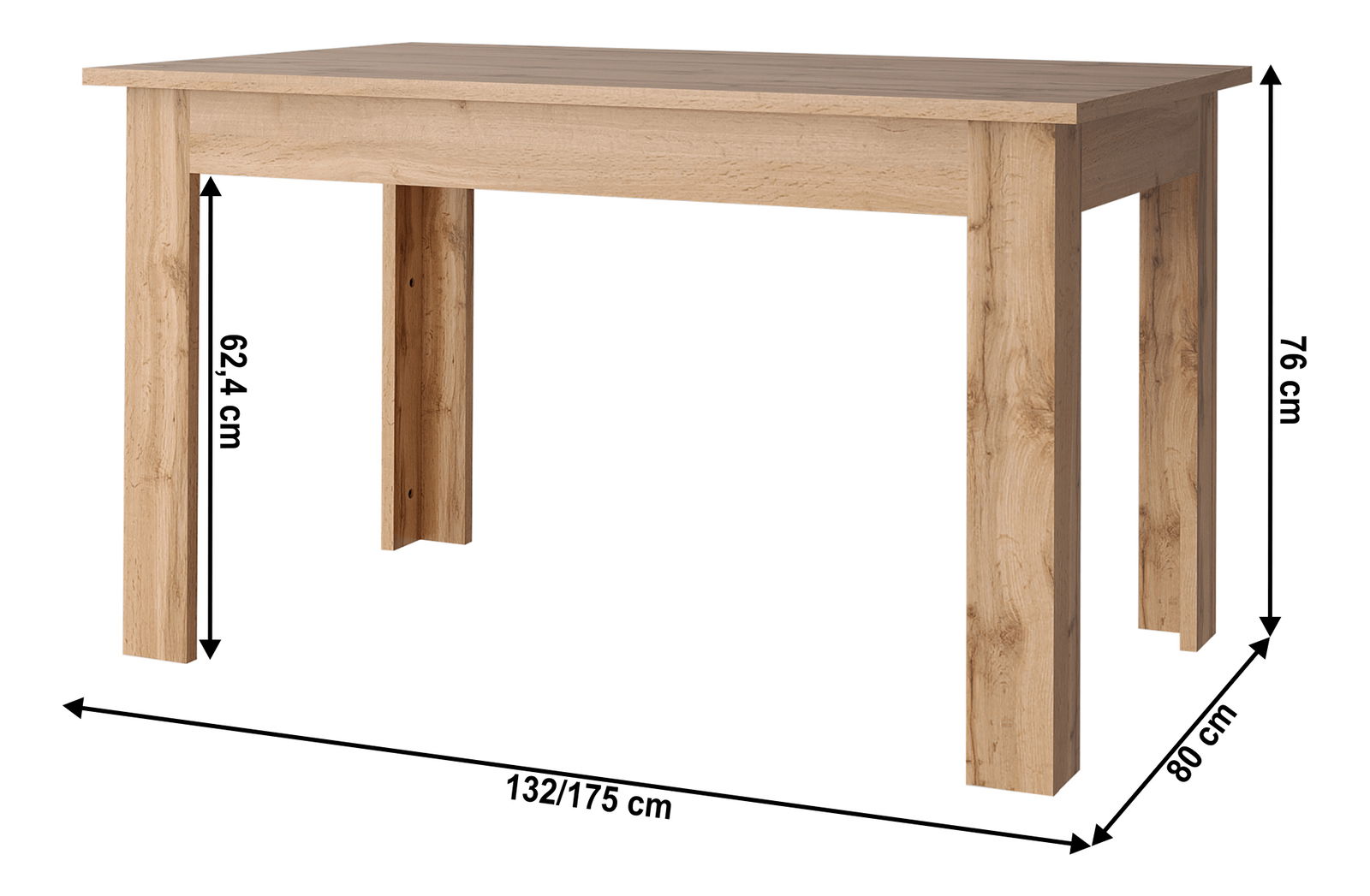 Rozkládací stůl Mateo je ideálním doplňkem pro vaši domácnost. S výškou 76 cm, šířkou 132 cm a hloubkou 80 cm je dostatečně velký pro 6 až 8 osob. Jeho elegantní dubový povrch v odstínu wotan přidává dotek přirozenosti do vašeho interiéru. Tento stůl je skvělým společníkem při každodenní snídani, obědech a večeřích, ale také se uplatní i na rodinných setkáních. Díky rozkládacímu mechanismu lze stůl snadno rozšířit až na šířku 175 cm, což umožňuje pohodlné usazení i většího počtu hostů. S Rozkládacím stolem Mateo získáte stylový a praktický kousek nábytku, který poslouží vám a vaší rodině dlouhá léta.