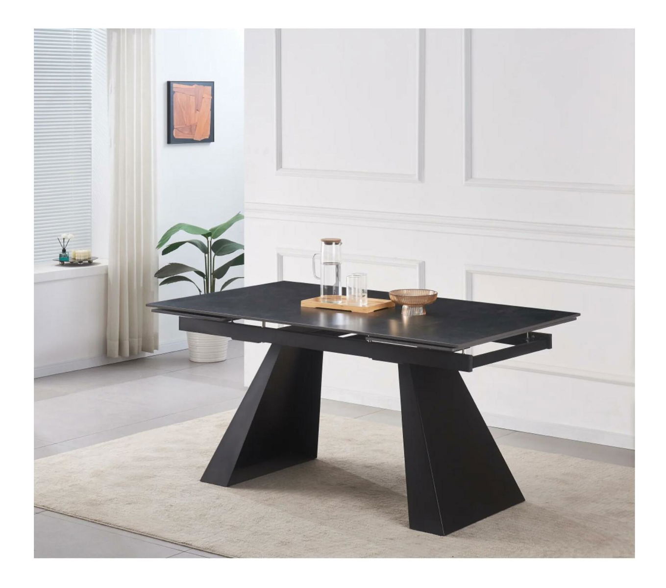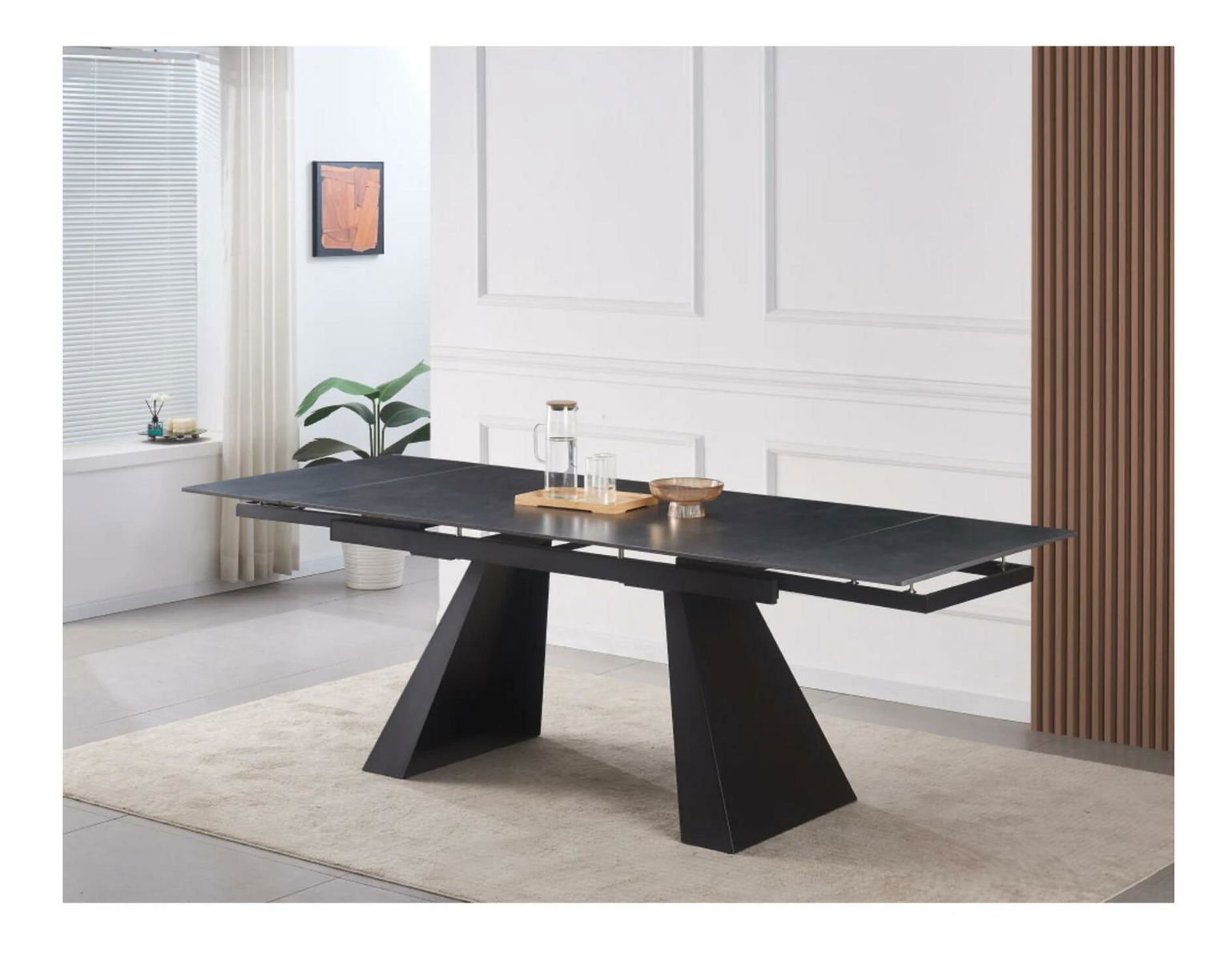 Tento stylový jídelní stůl je vyroben z prémiových materiálů, které zaručují jeho kvalitu a odolnost. Vrchní deska je z keramického materiálu o tloušťce 1,2 cm, což poskytuje odolnost vůči poškození a snadnou údržbu. Konstrukce nohou je vyrobena z kovu, což zajišťuje stabilitu a pevnost celého stolu. Stůl má obdélníkový tvar a je rozkládací, s maximální šířkou po rozložení 240,5 cm, což umožňuje pohodlné usazení většího počtu lidí. Nosnost stolu je 25 kg, což jej činí ideálním pro různé druhy stolování, od každodenních jídel až po slavnostní příležitosti. Svým moderním designem a kvalitními materiály je tento stůl výbornou volbou pro každou jídelnu, kde se pojí praktičnost s elegancí.