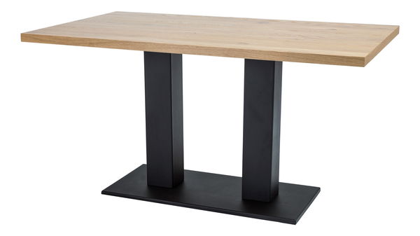 Stylový jídelní stůl, kterému dominuje masivní kovová podpěra a hrubší vrchní deska. Kombinace kovu a dřeva skvěle zapadne do moderních jídelen a prostor s industriálním nádechem. Pohodlně se při něm usadí čtyři osoby.