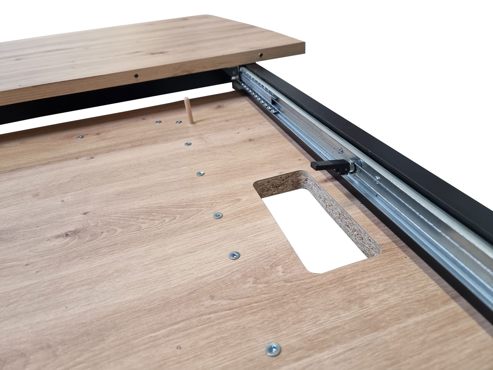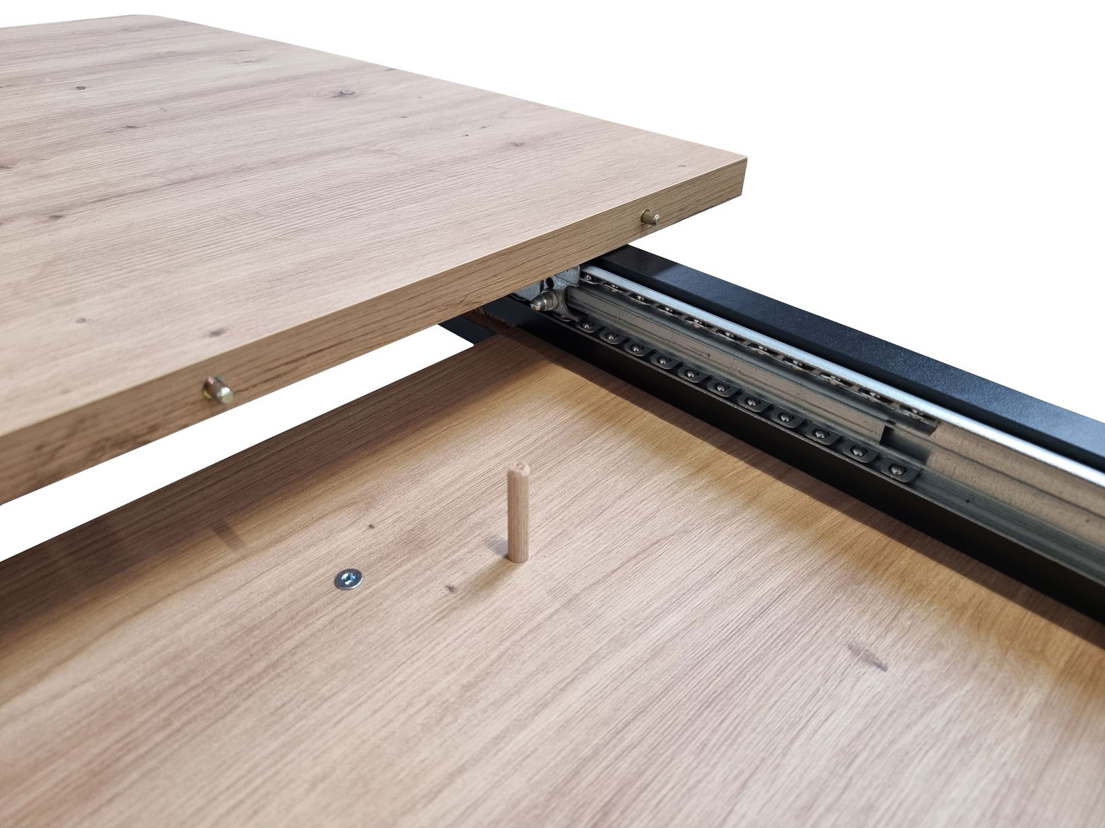 Stůl je rozkládací z původní délky 140 cm až na 210 cm pomocí vestavěného rozkládacího systému