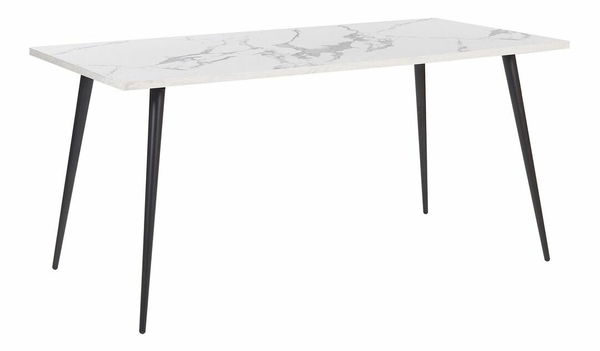 Stylová kombinace stolové desky s mramorovým efektem a černých nohou činí z tohoto stolu perfektní kousek do moderního i tradičního interiéru. Kovové nohy zajišťují stabilitu a stolová deska vyrobená z MDF materiálu s melaminovou povrchovou úpravou dodává stolu elegantní vzhled. Zkombinujte ho s židlemi v podobném stylu a vytvořte si dokonalý jídelní kout pro setkání s rodinou a přáteli.