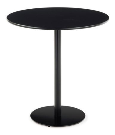 Bistro stolek kulatý, průměr desky 70 cm, tloušťka desky 15 mm, materiál dřevo typu MDF (černá barva), noha ošetřená černou práškovou barvou.